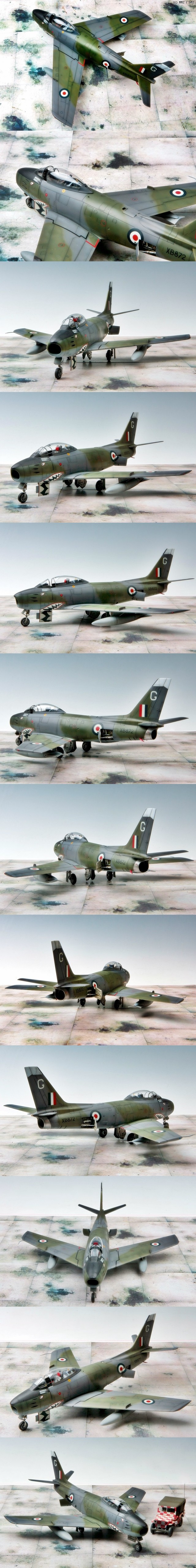 기체에 대해 설명을 드리자면, 영국에서는 세이버를 아주잠깐 사용했는데요,영국 최초의 제트기이인 Gloster Meteor가 한국전 당시 별다른 성능을 보여주지 못하자(지상 공격기로만 겨우 사용했죠) 케나다 라이센스 버전인 CL-13 Mk.2 및 Mk.4를 1953년부터 사용하게 됩니다. 그로부터 영국 차기 제트기인 Howker Hunter, Gloster Javelin이 나올 때 까지 1958년까지 사용되다, 개수를 거쳐 유고슬라비아와 이탈리아에 공여되는 짧은 역사를 가지고 있습니다.