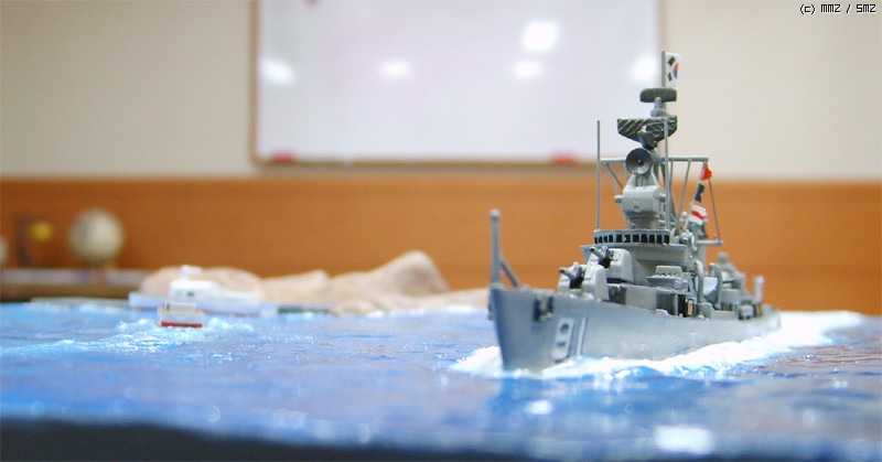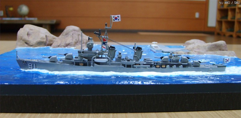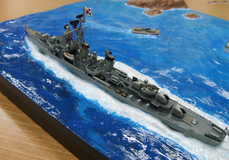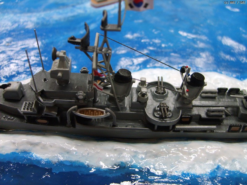 함교의 형상과 함교 전면의 헤지호크, 마스트의 형상과 레이더의 모양, 무엇보다도 5연장 어뢰발사관 대신, 40mm 보포스 연장고사포와 3연장 대잠경어뢰가 장착된 것이 차이점인데 스케일이 700:1이다 보니 개조작업이 그리 만만치 않았습니다.