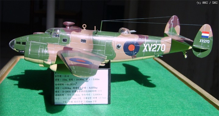 허드슨은 미공군형과 달리 그라스 노즈이며 동체 후방의 포탑 형상이 둥글다.