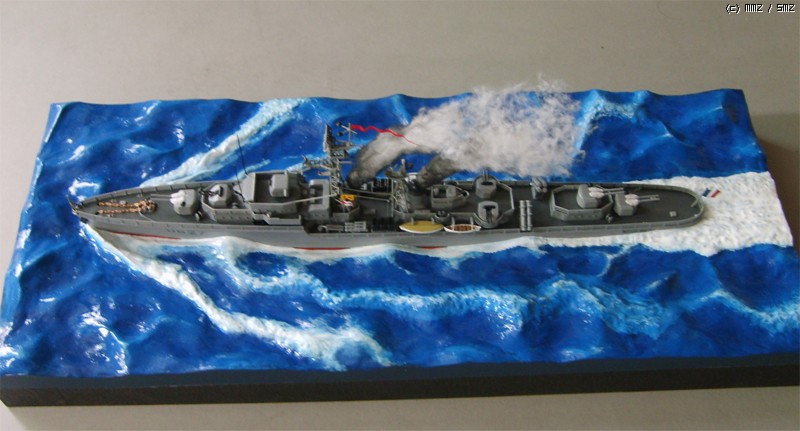 제가 처음 구입해 본 Heller사의 400:1 함선 시리즈인데 박스를 열었을 때 상당히 실망했습니다. 디테일은 거의 없이 그냥 함선의 윤곽만 만들어놓은 것 같은 밋밋하고 투박한 성형에 만들고 싶은 기분이 싹 달아났는데 그래도 돈을 주고 산 것이 아까워서 만들었던 작품입니다.