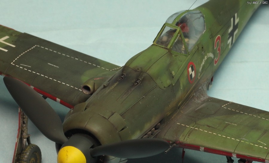 디테일업은 플랩 다운 시킨 것하고, 브레이크 라인 추가한 것, 안테나 라인뿐이 없습니다만, 기총,피토관, 안테나류등 돌출된 모든 것은 금속부품으로 바꾸어 주었습니다.