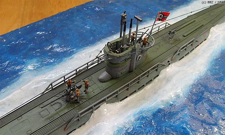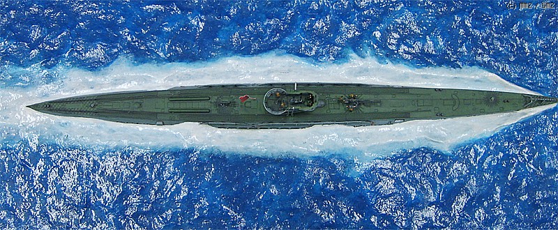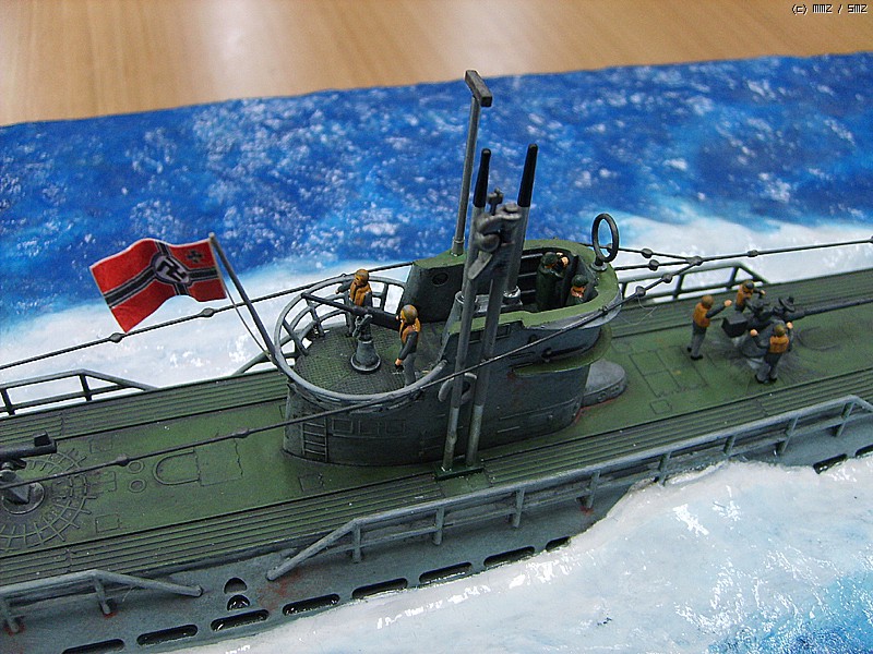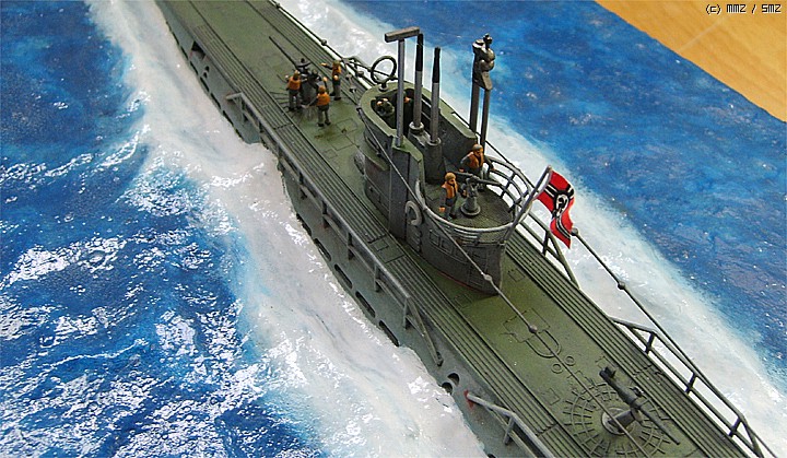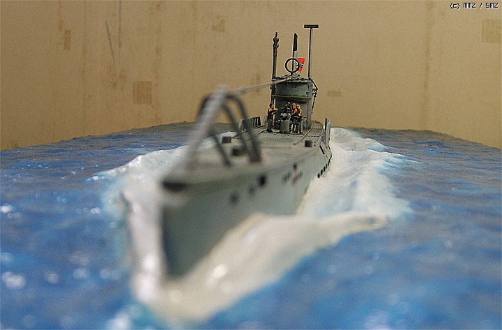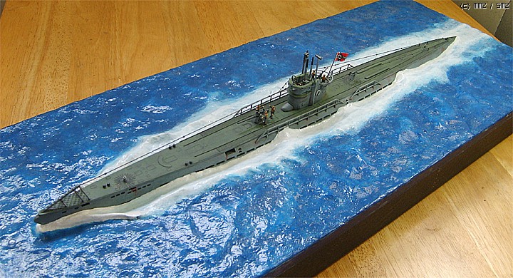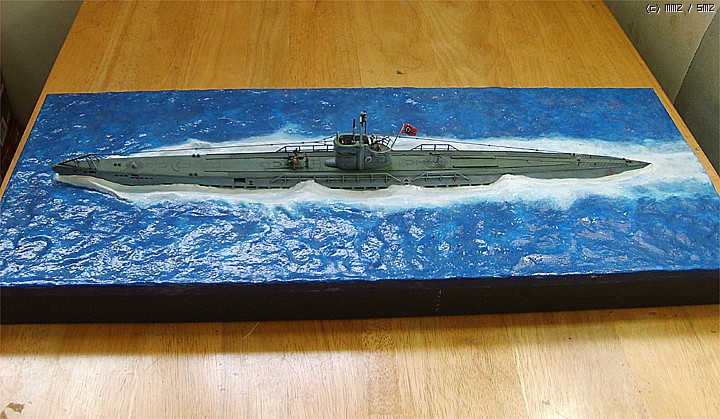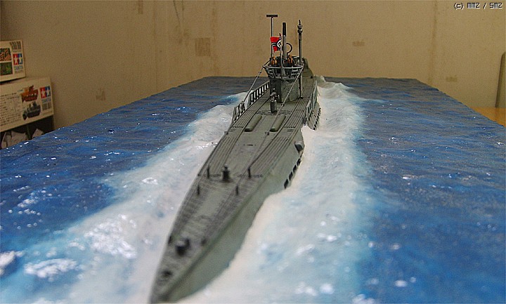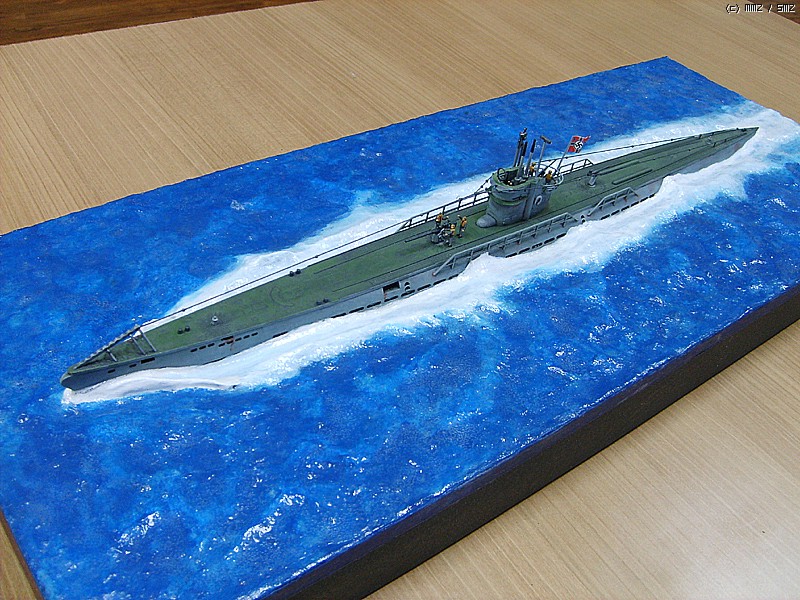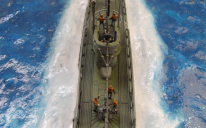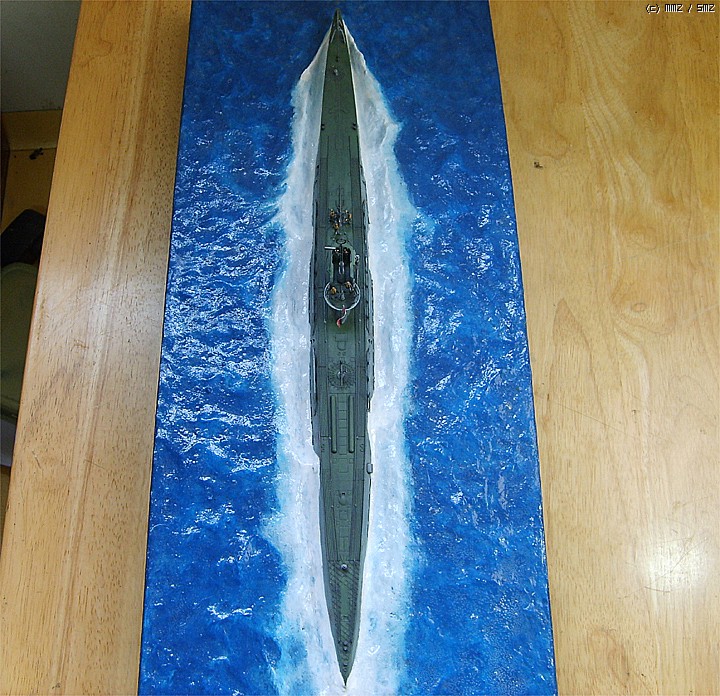 파도가 잔잔한 대서양을 유유하게 항진하는 유보트의 포스가 느껴지게 만들고 싶었는데 사진을 찍어보니까 실물보다 많이 떨어지는 것 같습니다. 150:1이어서 실물의 크기는 상당합니다.