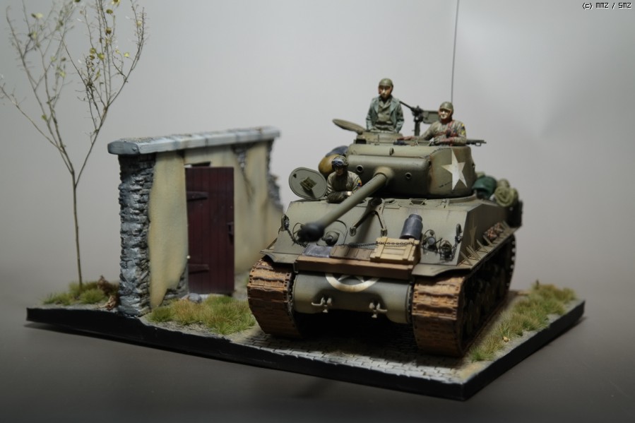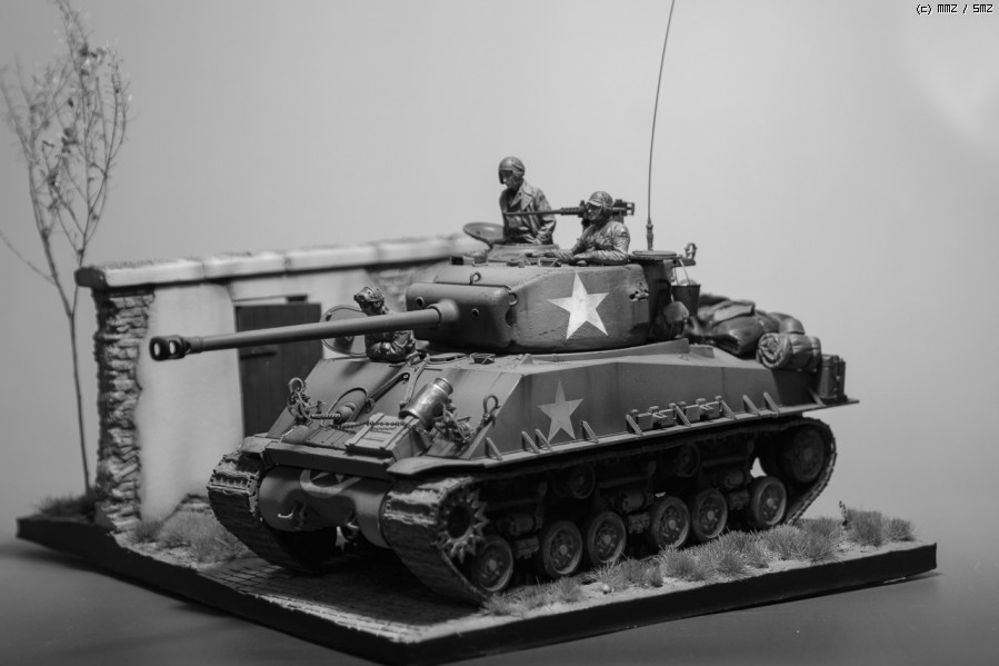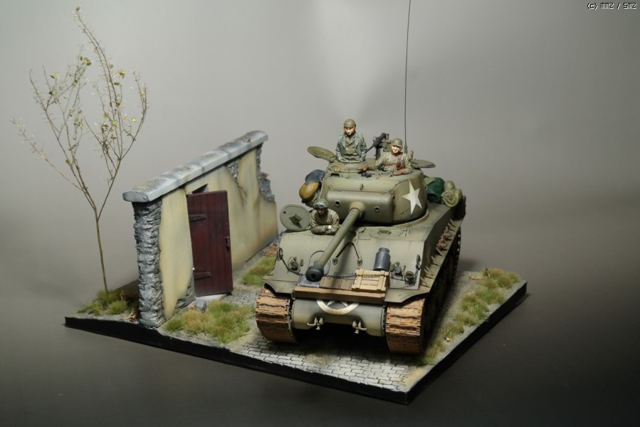밀리터리는 문외한인 제가 도전하는 기분으로 제작한 셔먼입니다. 퓨리열풍으로 비교되는거 같아 쑥스럽네요... 신금형(아스카)타미야 이지에잇킷에 미니아트 베이스입니다.