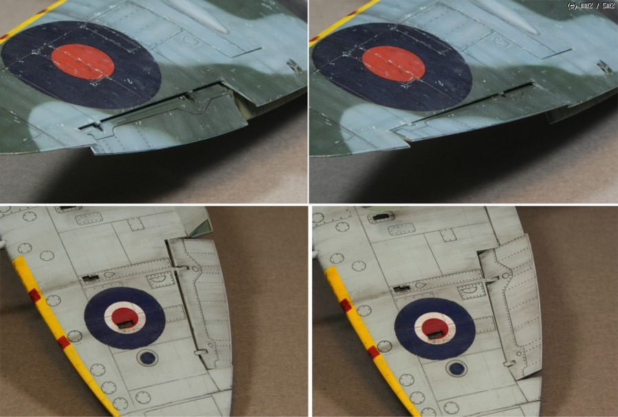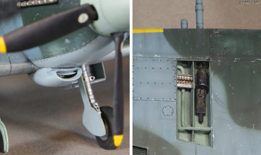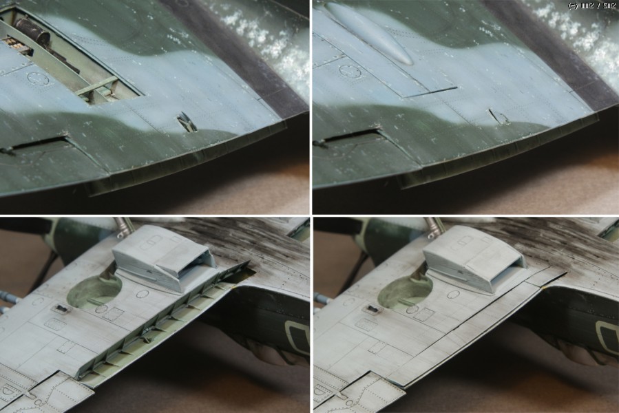 오일쿨러의 디테일업, 재 제작된 이스파노 기총의 모습. C형에서는 키트의 구성과는 달리 Cal'50
