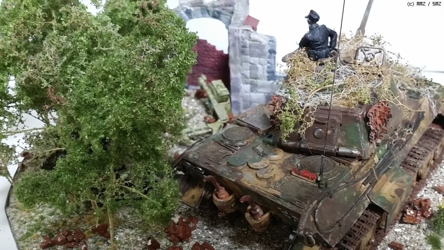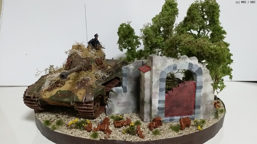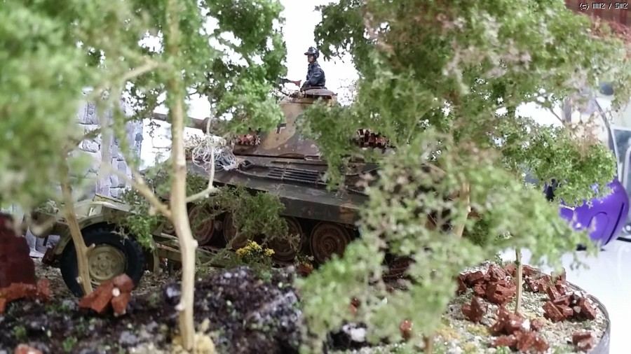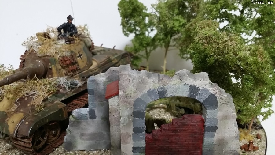 전쟁의 허무함을 표현하고자 인형 1명, 이동용 수레 외 올리지 않았습니다. 다만 노흐 전경재료의 나무와 네이쳐의 꽃과 수풀은 아낌없이 사용해줬습니다. 킹타이거는 곧 연합군에 격파된 후 버려질 운명입니다.