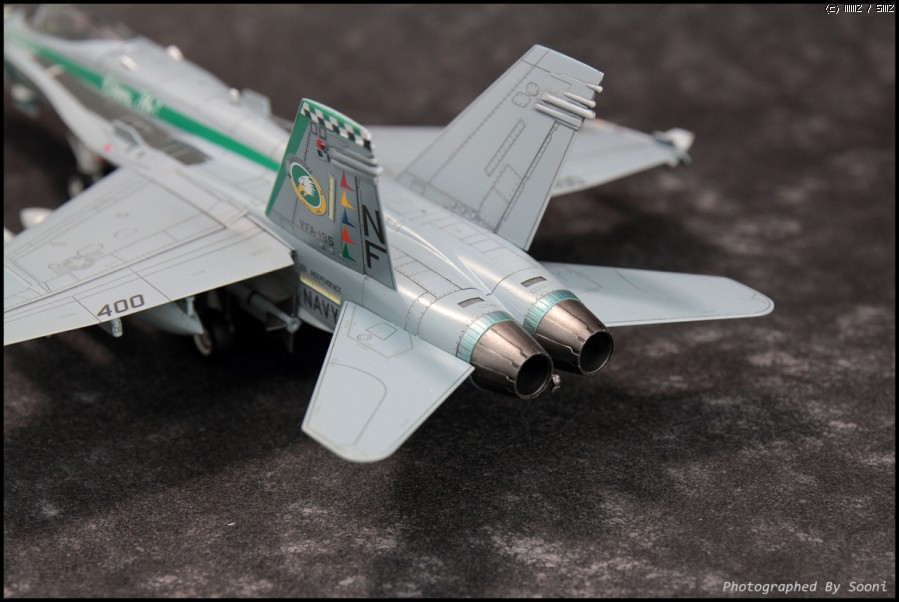 엔진열에 의한 변색을 표현하고 싶었는데.... 클리어 그린이 너무 많이 올라갔어요.;