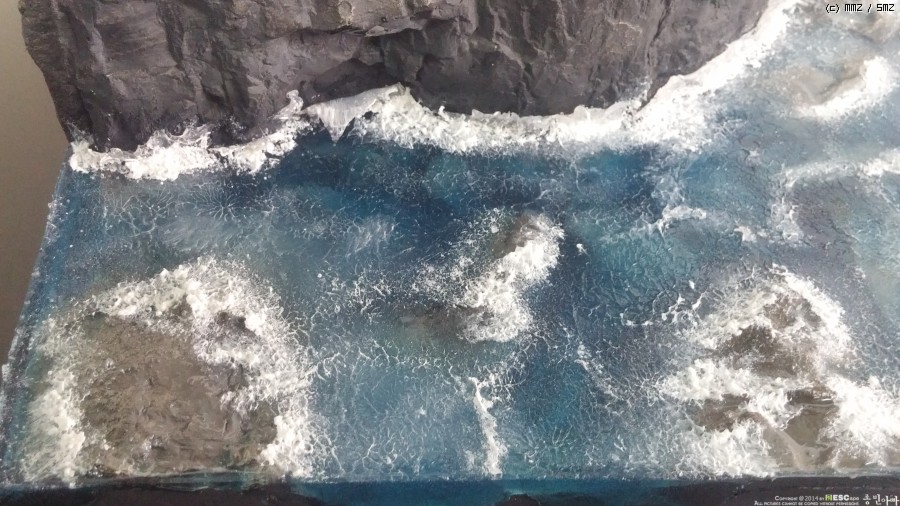 수면가까이의 거품 표현은 겔미듐에 백색젯소를 일부 섞은 후 유리알갱이로 풍부함을 더했달까요