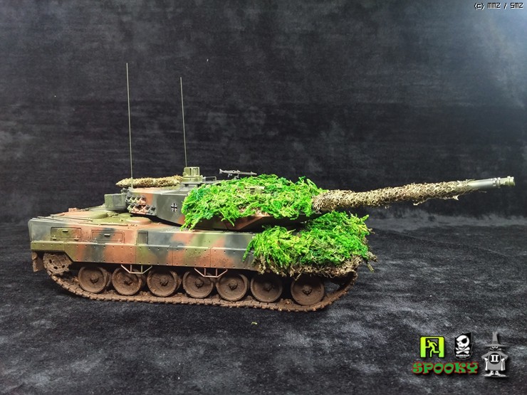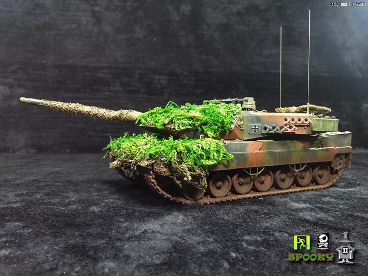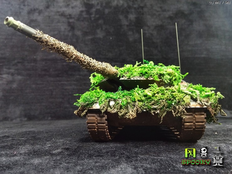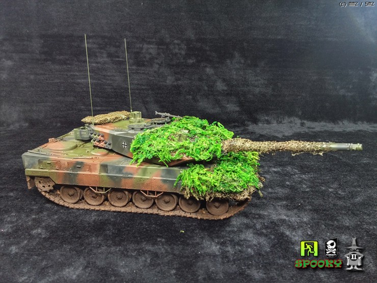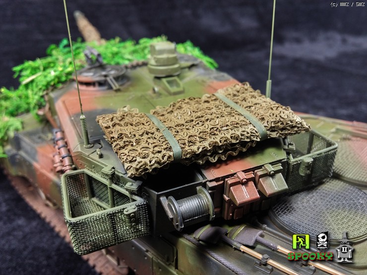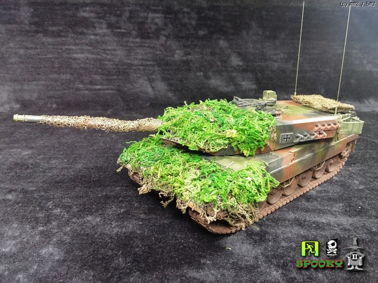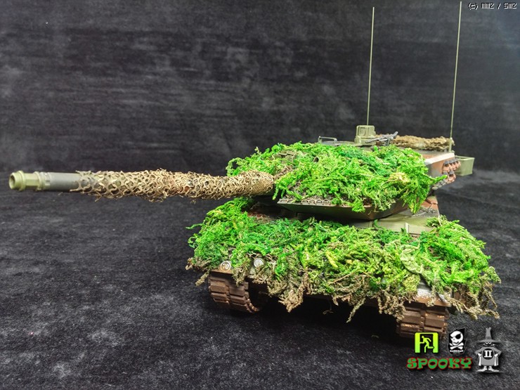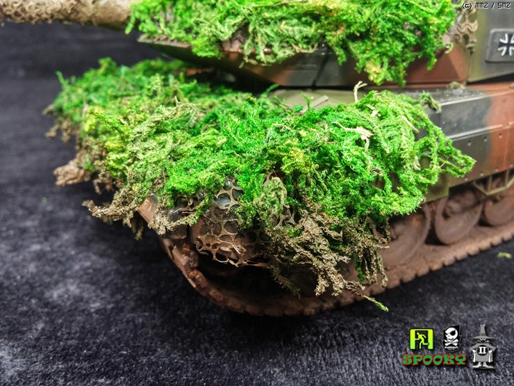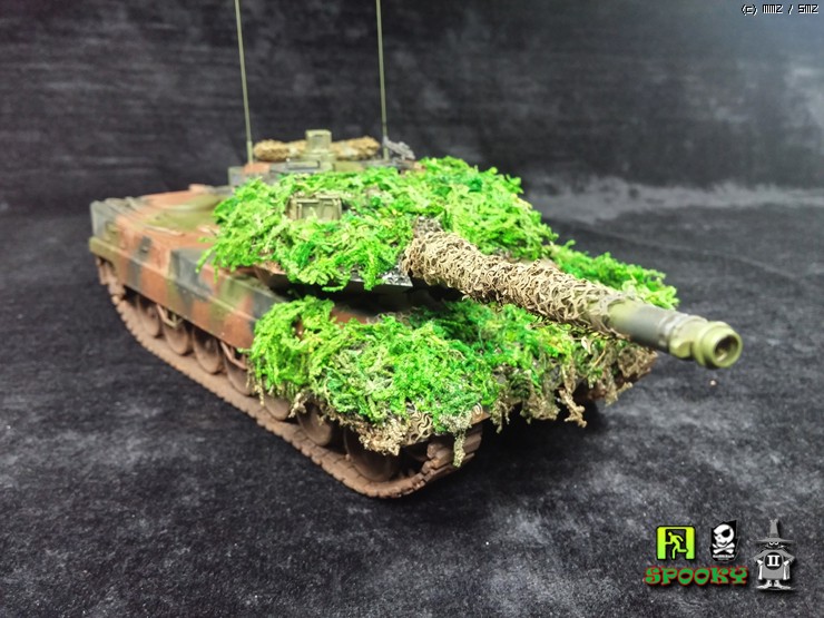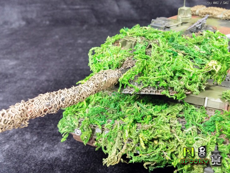 독일군 LEOPARD2를 보니 포신과 포탑 차체에 위장망을 두르고 수풀로 위장한 사진이 있어 비슷하게 만들어보려했습니다.