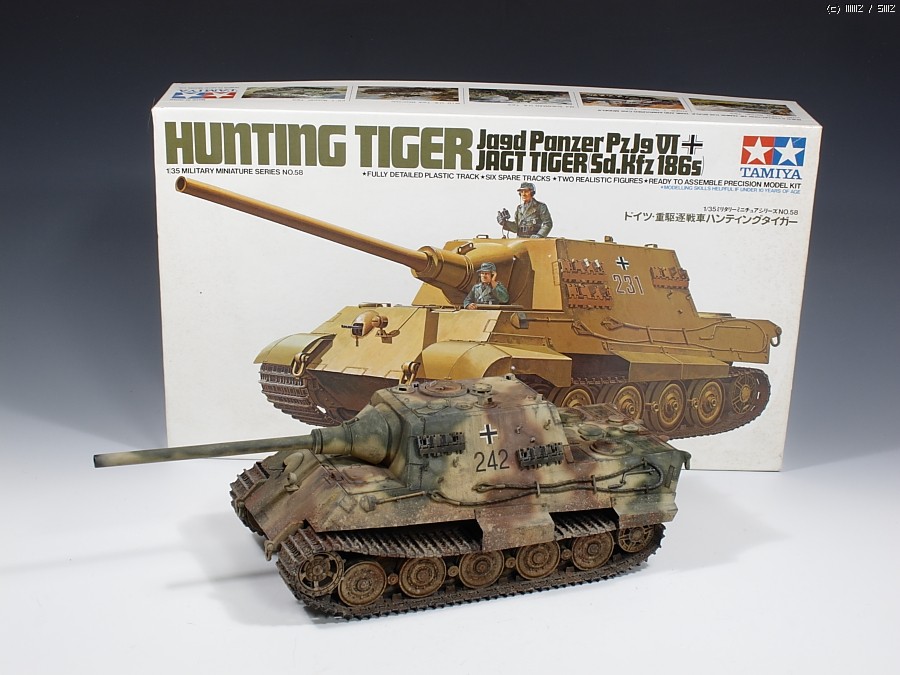 유월말에 제작기에 올렸던 구판 타미야제 헌팅타이거 입니다. 더운 야밤에 조금씩해서 완성했습니다. 1차 도색마감후 좀 손을 봐서 재도색한 결과입니다.