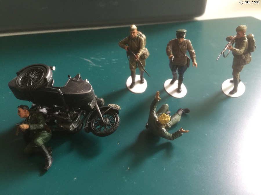독일군 오토바이는 제가 최초로 구매했던 즈베즈다 제품에 들어있는 건데요. 사실 망한 물건인데 여기서 요긴하게 쓰였네요. 이 제품을 만들 때 부터 아 이놈을 여기다 쓰면 되겠구나 하는 생각이 들었습니다. ^^