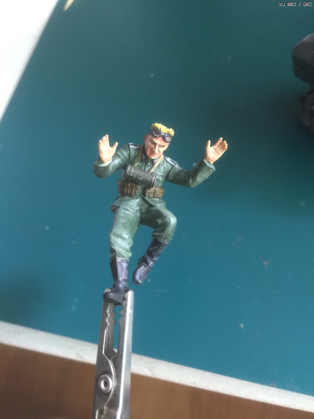 독일군 운전병.. 금발 머리 표현을 레드그린, 라이트그린, 옐로 순으로 칠하는 방식으로 했는데 처음에는 그럴 듯 했는데 자꾸 덧칠하다 보니 아.. 망했어요 가 됐네요.