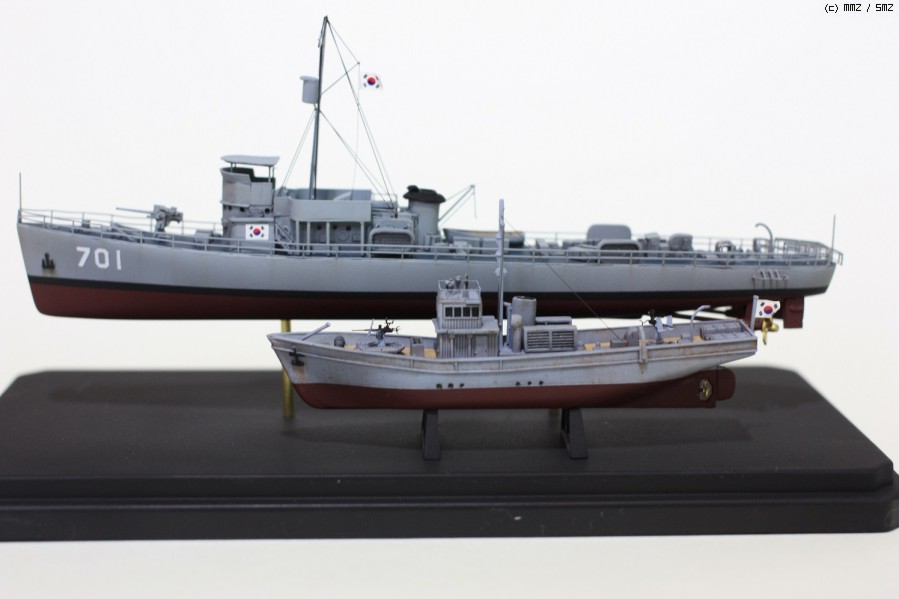 도입 초기사진에는 일본의 기관총을 그대로 달고있는 모습이 보이지만 시간이 지나면서 미제기관총으로 바꿨을 거라 생각하고 전함만들때 쓰고남은 별매기관총을 달아줬습니다. (6.25.때는 육군용 평사포를 달았다고 하는데 1/350 스케일의 평사포를 못구해 패스)