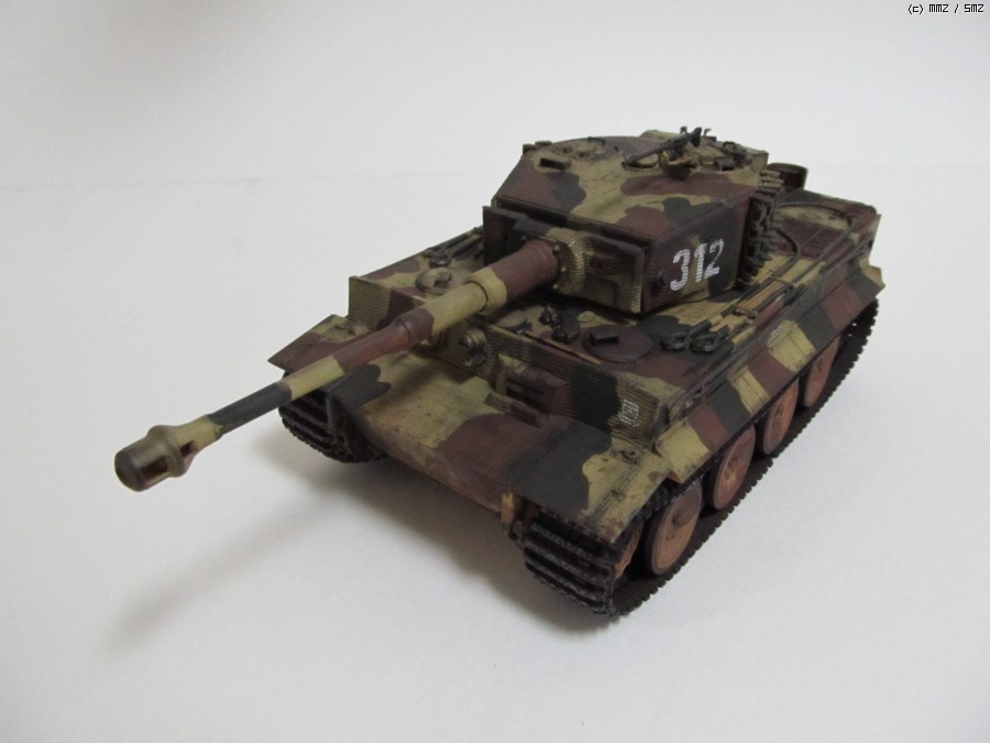 타미야 아크릴로 붓도색했으며 위장무늬는 설명서에 한쪽면만 나와있었기 때문에 나머지면들은 그냥 상상해서 그려냈습니다 찌메릿 코팅은 타미야의 스티커식 찌메릿데칼을 사용했습니다