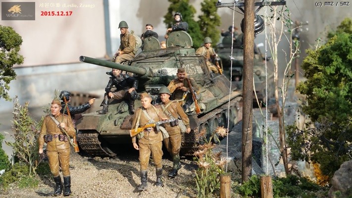 전차는 아카데미 신발매제품인 T 34/85 1945 두대에 DEF 별매 포신과 애칭을 적용시켰습니다.