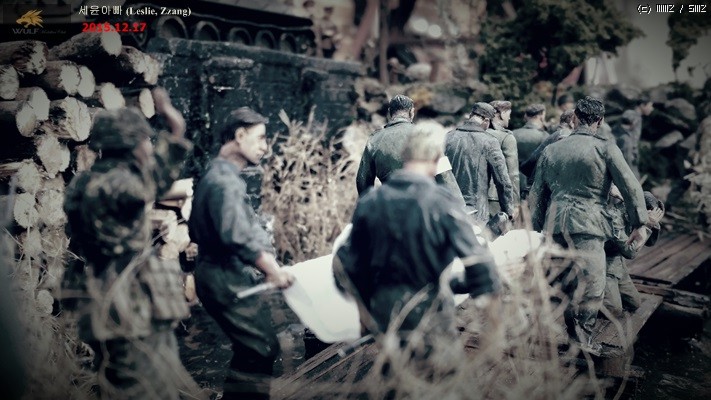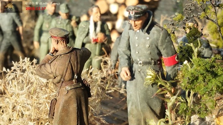 대전말 베를린으로 진군하는 소련군과 호송되는 포로들의 상황을 설정해 보았습니다.