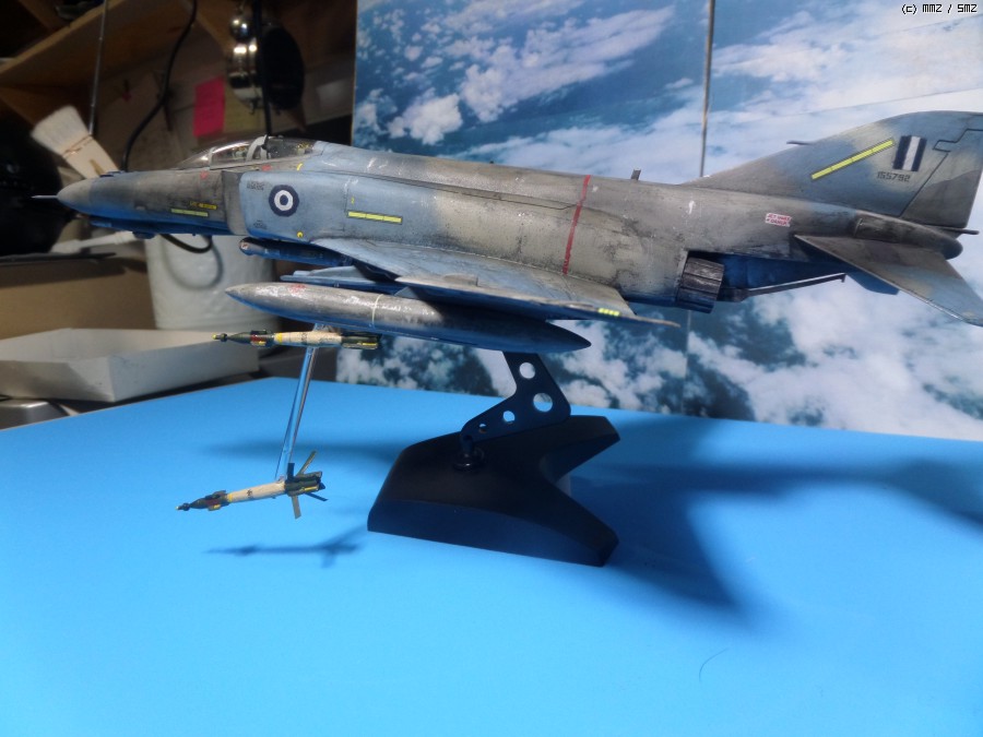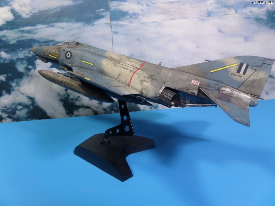 지저분한 웨더링, 도색이 각기 다른 3개의 증조탱크. 아마도 추측컨데, 급유기가 없다보니, 영공의 종심반경이 길어 증조탱크를 보통 3개씩 달고 다니는 그리스 팬텀의 특징.
