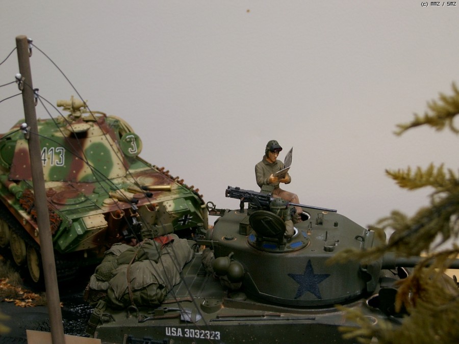 전쟁관련 무슨 기사가 실렸나 신문을 열심히 읽고있는 전차병...