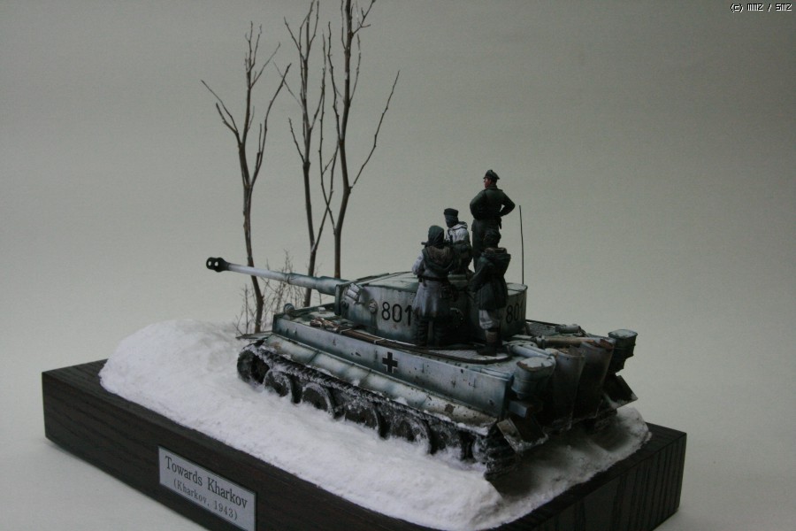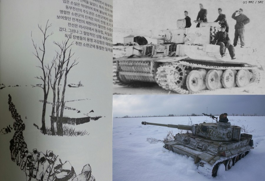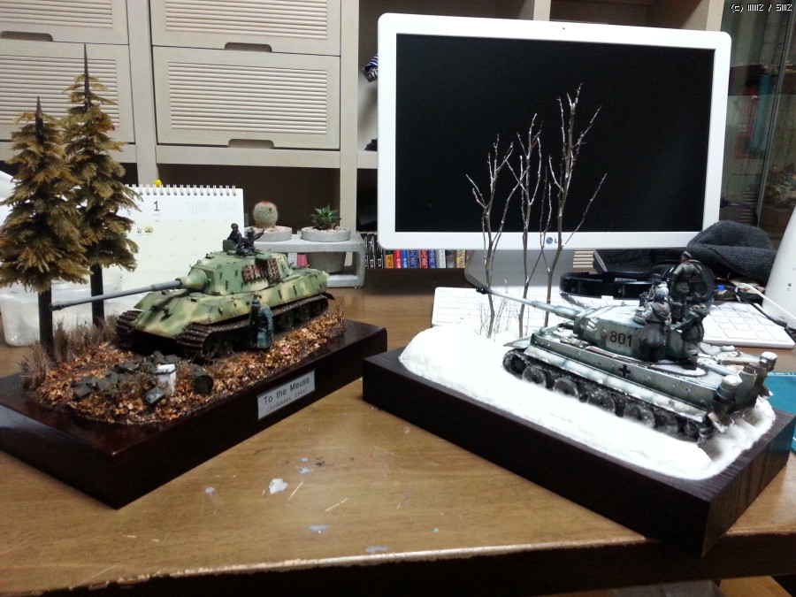 - 티거1는 타미야제에 별매궤도, 에칭을 적용하여 조립하였고, 공명님께 동계위장으로 도색의뢰후 다시 지면에 맞게 웨더링하였습니다. 인형은 4개 레진회사의 각 1명씩 조합입니다.