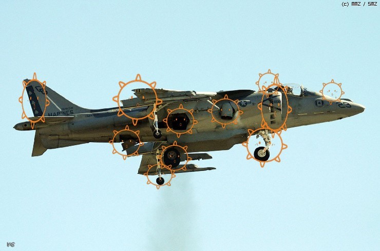 해리어의 경우, 인테이크 측면의 보조 덕트가 비행중일 때는 막히고, 이착륙시에는 개폐되어 집니다.