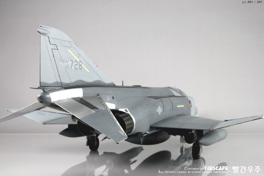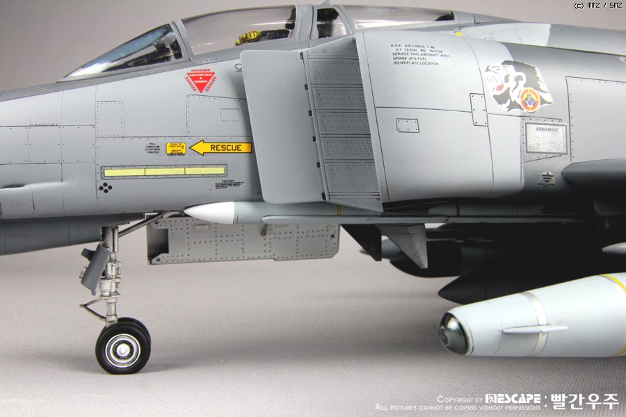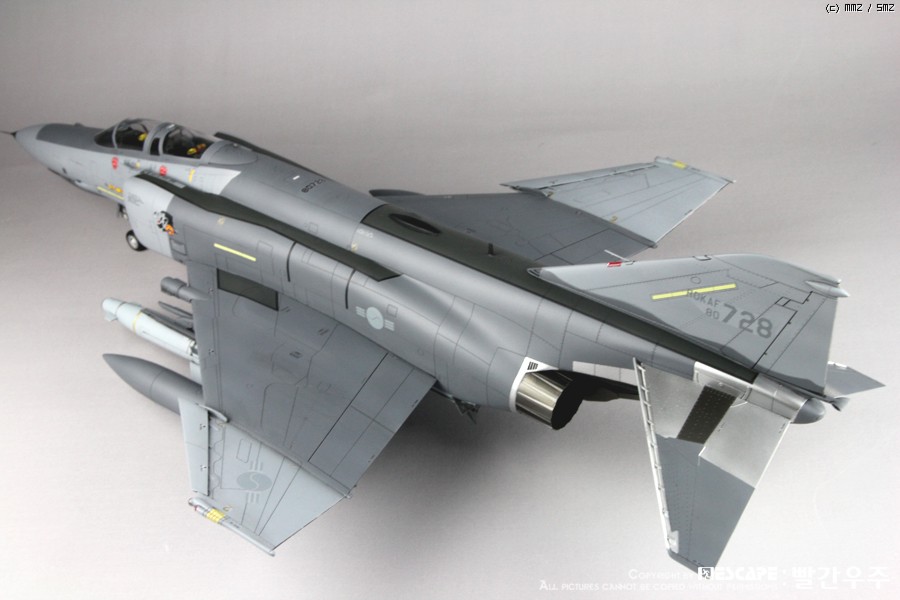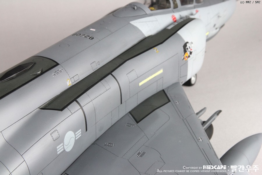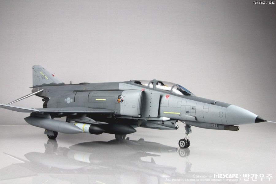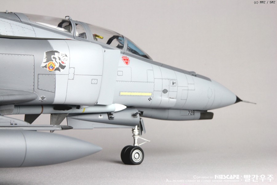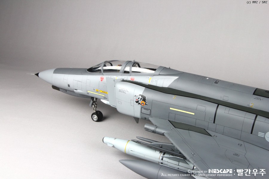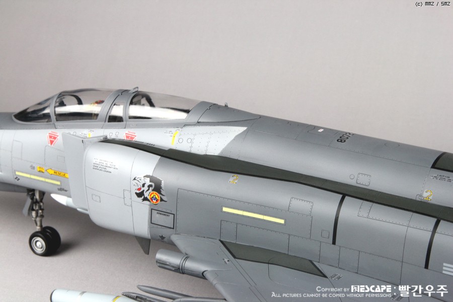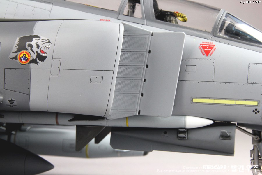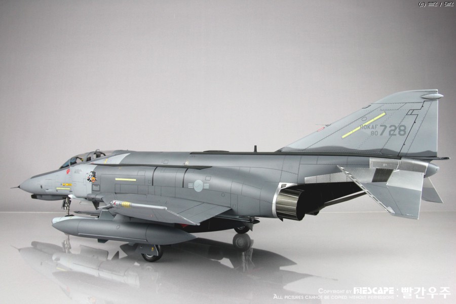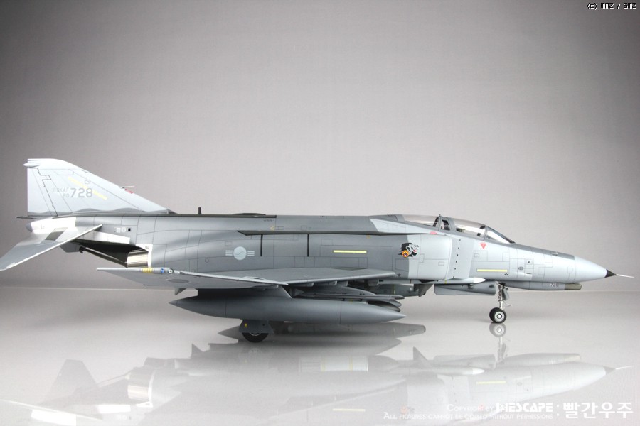 4년전쯤에 디코퍼레이션에서 발매하였던 32스케일 한국공군형 팬텀E형입니다. 많이들 만들어 보신 킷이고, 이미 많은 분들께서 멋진 작품 사진을 올리신 킷이죠. 킷 자체는 굉장히 훌륭한 킷이라고 생각하지만, 결정적으로 데칼이 문제인 것 같습니다. 많은 분들이 말씀하신대로 데칼이 정말 안 좋습니다. 인터넷에 떠돌아 다니는 얘기들을 들어보면 출시당시 카르토그라프 데칼을 적용하려고 했었다가 단가가 너무 높아지는 바람에 그냥 국산데칼로 전환했다고 하던데요. 킷값이 얼마나 높아질지는 모르겠으나... 글쎄요... 32스케일 킷 가격 생각하면 가격이 얼마정도 상승한다고 하더라도 품질 좋은 데칼이 들어가 있는 것이 훨씬 더 구매하는데에 매력적이지 않을까 생각해 봅니다. 데칼 말고는 정말 좋은 킷이에요. ^^