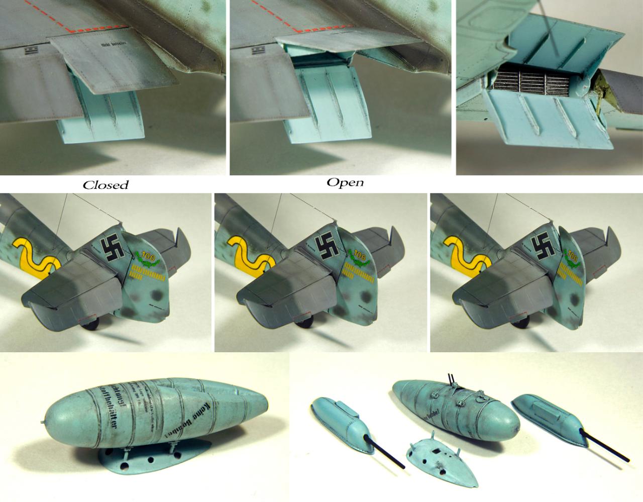 라지에이터 입구 Open및 후방 몰드추가,상부셔터 가동개조.오일쿨러 후방도어 Open.랜딩기어및,베이의 디테일업.