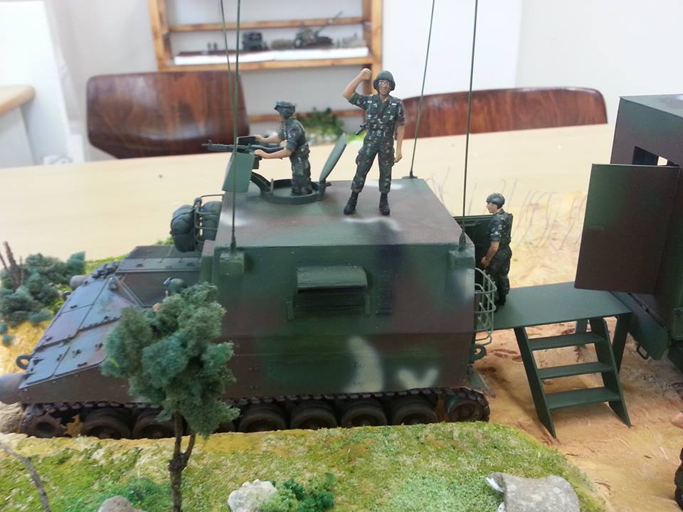 대대 작전반을 만들어보았습니다. 부대를 소개하는 디오라마이기 때문에 K-77이 꼭 필요했는데 어떻게해도 K-77을 부대안에서, 병사신분으로 쉽사리 구할 방법이 없어 갖고있던 K55키트를 눈물을 머금고 잘라서 프라판으로 급조했습니다.