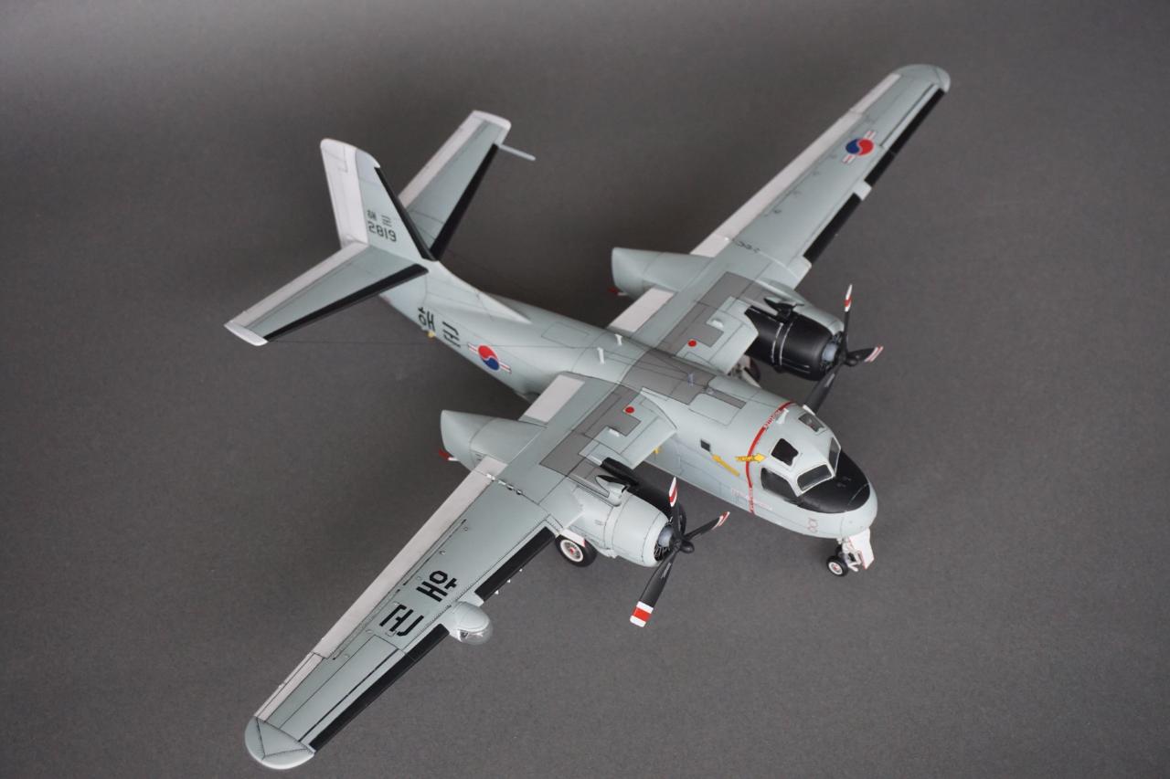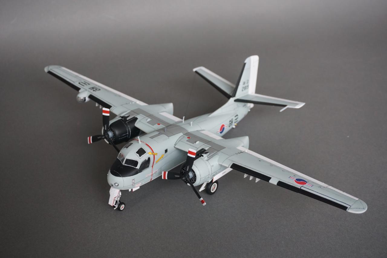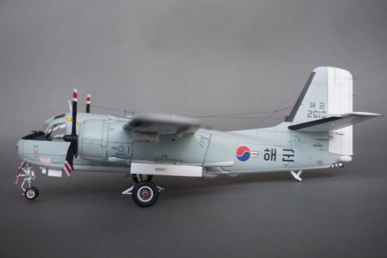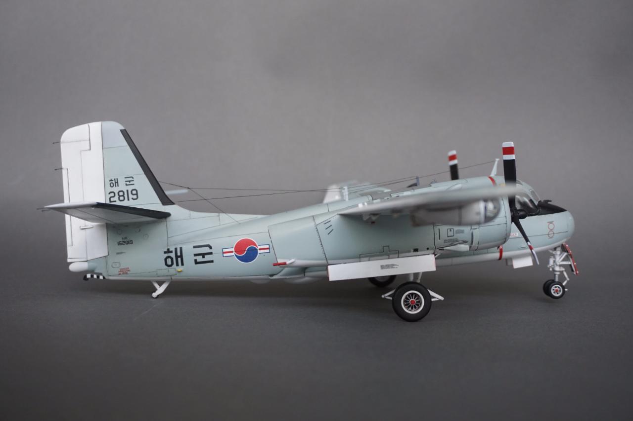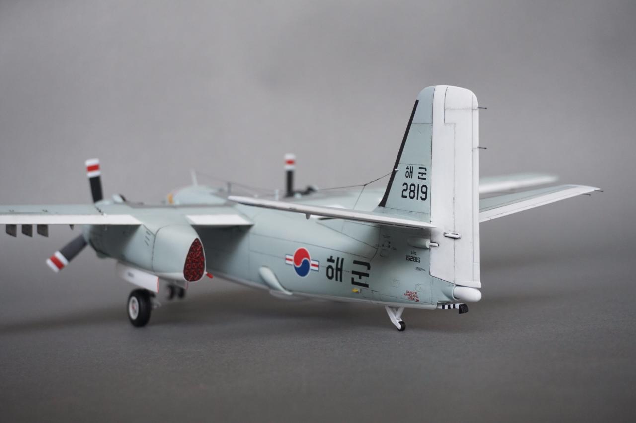 키네틱 S-2 입니다. 우리나라 해군에서 사용하던 기체로 만들었고요 갤러리에도 회원분들 작례가 있는데 전 데칼을 못 구해서 직접 만들었습니다. 돈도 많이 들고 특히 자료가 너무 없어서 참 힘들었는데 마침 플래툰 2001년 5월호에 선명한 사진이 몇 장 있어서 그 사진들을 바탕으로 작업 하였습니다. S-2에 대해서는 잘 모르지만 이번에 만들면서 보니 세세한 변종이 참 많은 기체인 것 같습니다. 킷하고 사진을 비교하자면 테일에는 둘 다 S-2E로 마킹되어 있는데 안테나선 부착위치도 다르고 기수와 어뢰 격납창도 길이도 다릅니다. 보면 볼수록 세부사항에서의 차이가 계속 발견되는데 그런 것 다 따지다가는 완성 못할 것 같아서 적당한 선에서 정리하였고 사진상의 실물 기체가 너무 깨끗해서 저 또한 치핑이나 웨더링은 거의 하지 않았습니다.