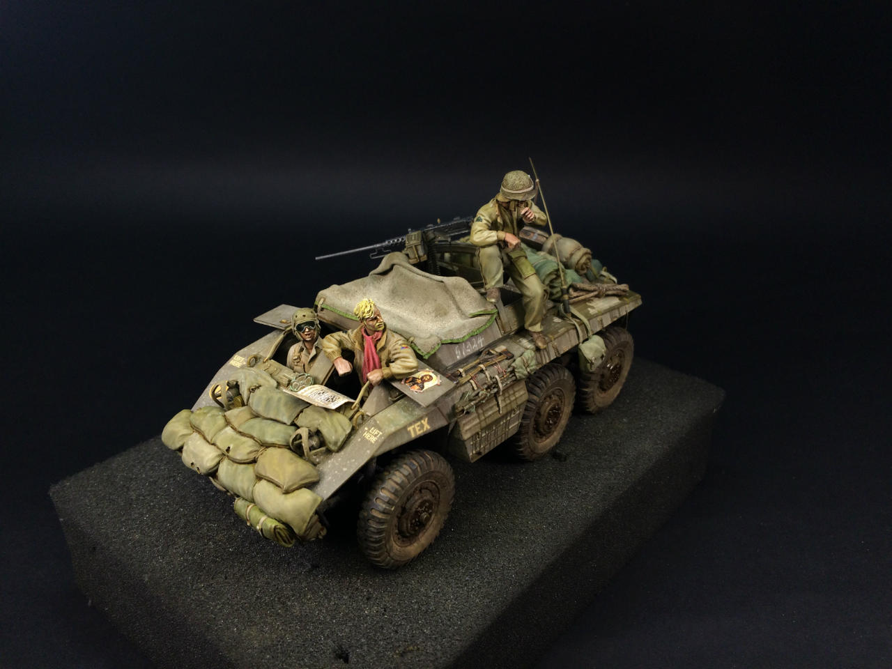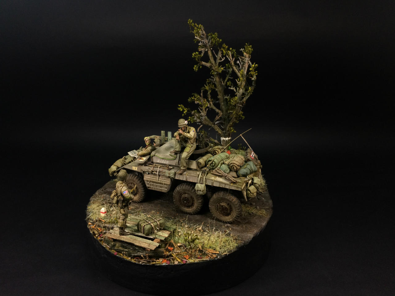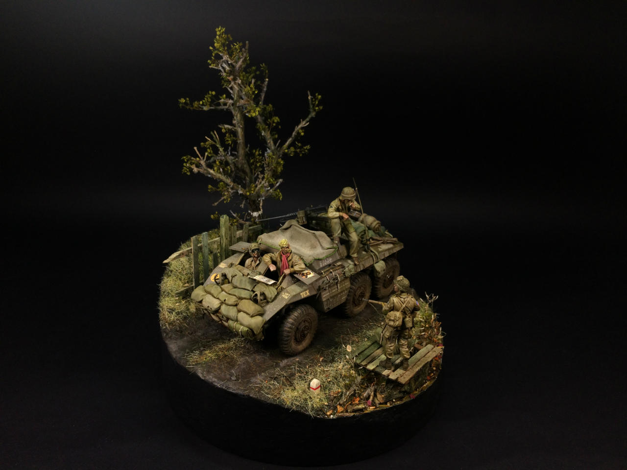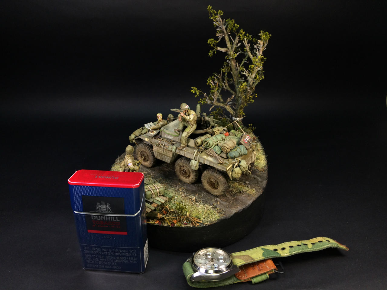 안녕하세요^^ 벌써 5번째 완성을 보았네요^^ 이번 작품은 타미야사의 M8인데요 마켓 가든 당시를 배경으로 삼아 보았습니다~ 15*15 사이즈의 원형베이스 인지라 많은 스토리를 담진 못했습니다^^;; 그정도 사이즈가 제 한계이기도 하고요~ 이번엔 과거 제가 좋아했던 벤린덴같은 우화적이고 동화적인 분위기를 살려 보고자 노력했습니다~ 체색방식도 기존과 좀더 다른 느낌을 주려고 노력했고요 ㅎㅎ 결과는 50:50 정도랄까요 어느정도 성과를 보았지만 여전히 튀는 색들이 많이 보이네요 ㅎ 아직 많이 멀었네요 주저리 주저리 서론이 너무 길었네요^^