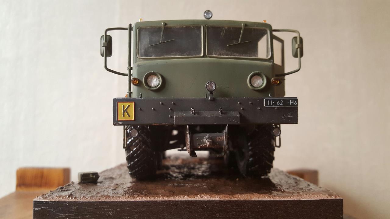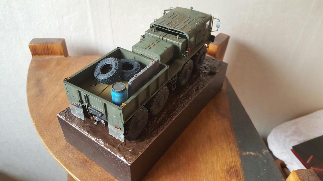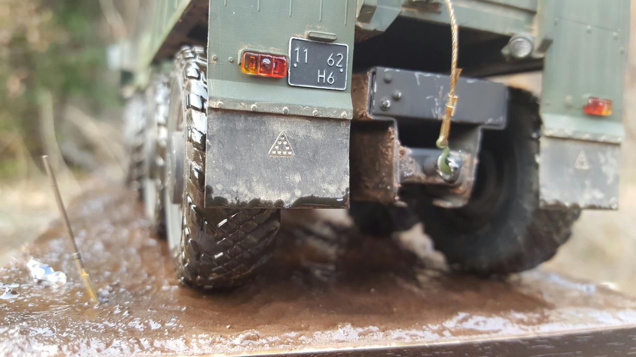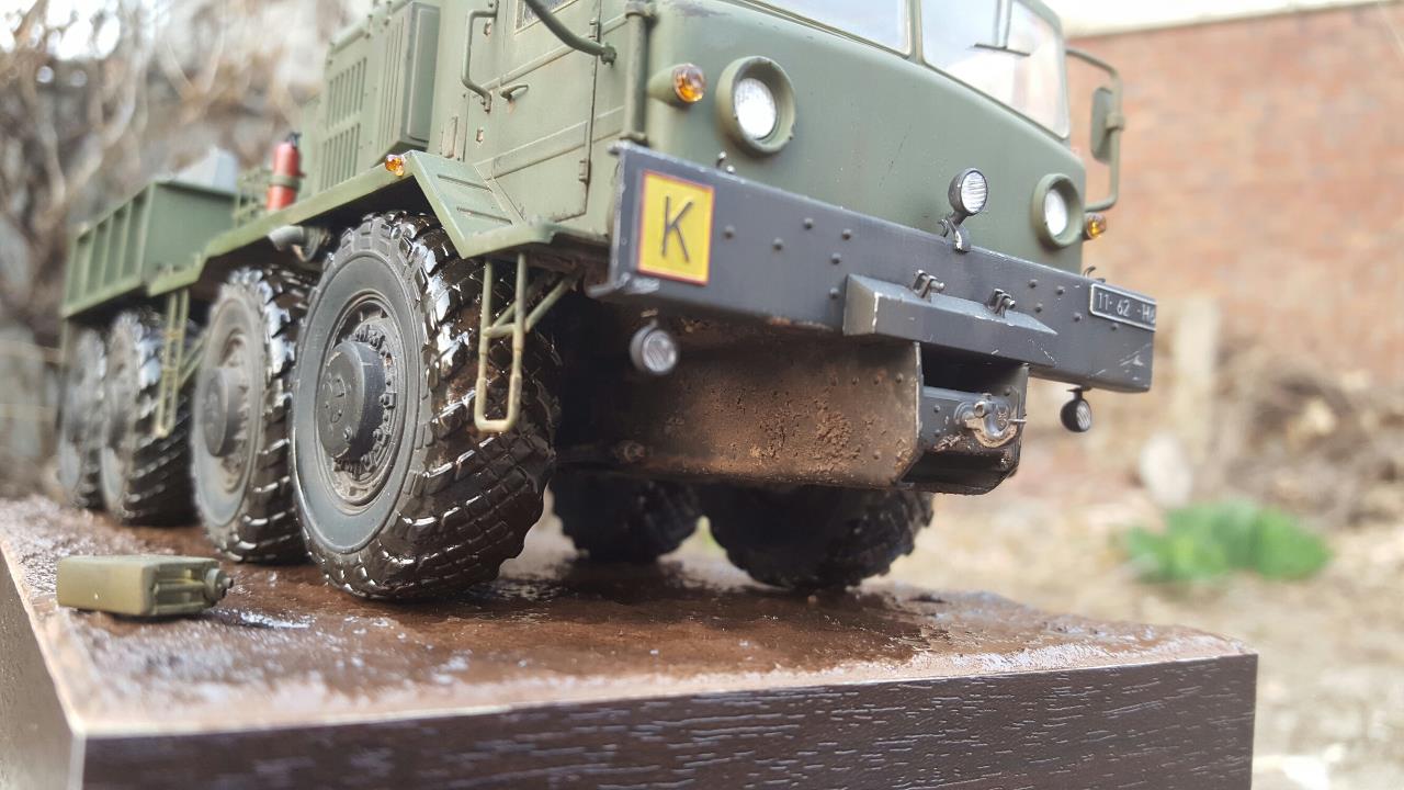 진흙길을 지나가다 잠시 운전사가 자리를 비운 장면입니다. 베이스가 허전하여 기름통,삽 등을 꽂아보았습니다.