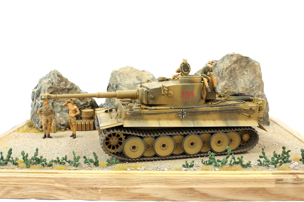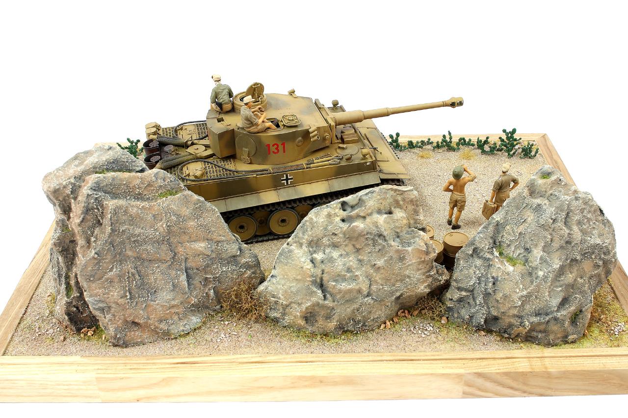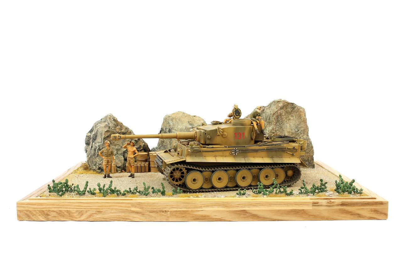 지난번 제작했던 타이거 131 로 작은 비넷을 완성하였습니다. 전차는 아크릴 워싱으로 먼지웨더링 을 더해주었고 타미야 슈타이어 킷에 들어있는 DAK 인형으로 전차병 을 표현하였습니다.