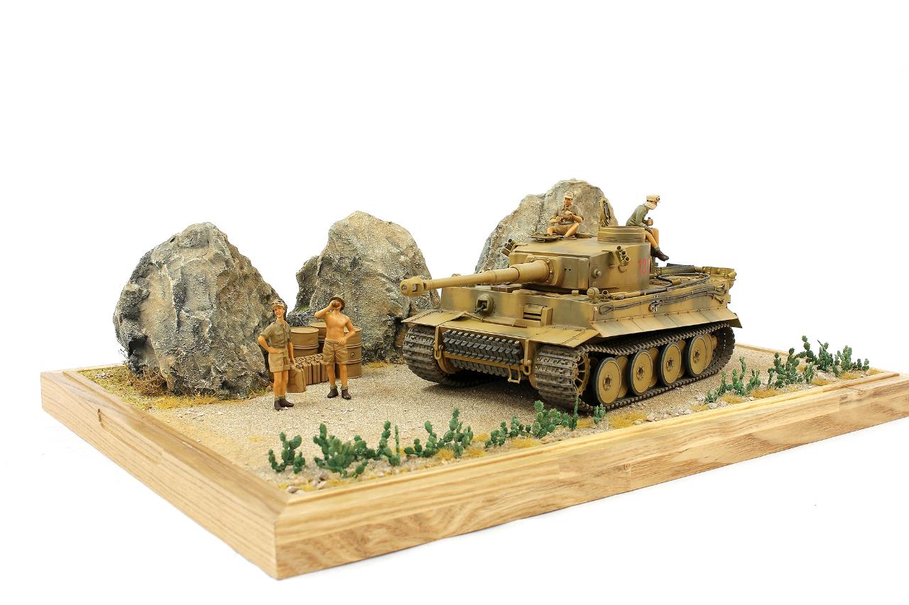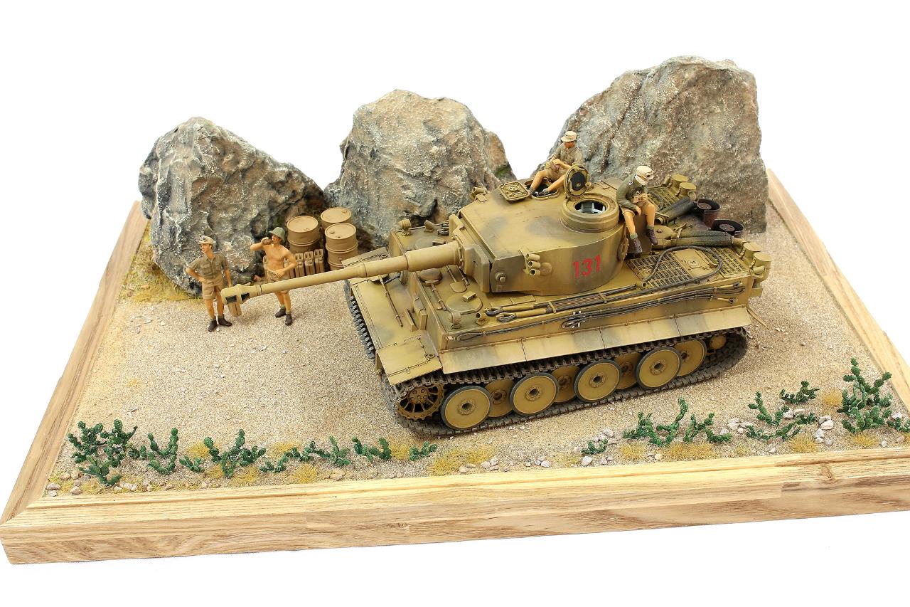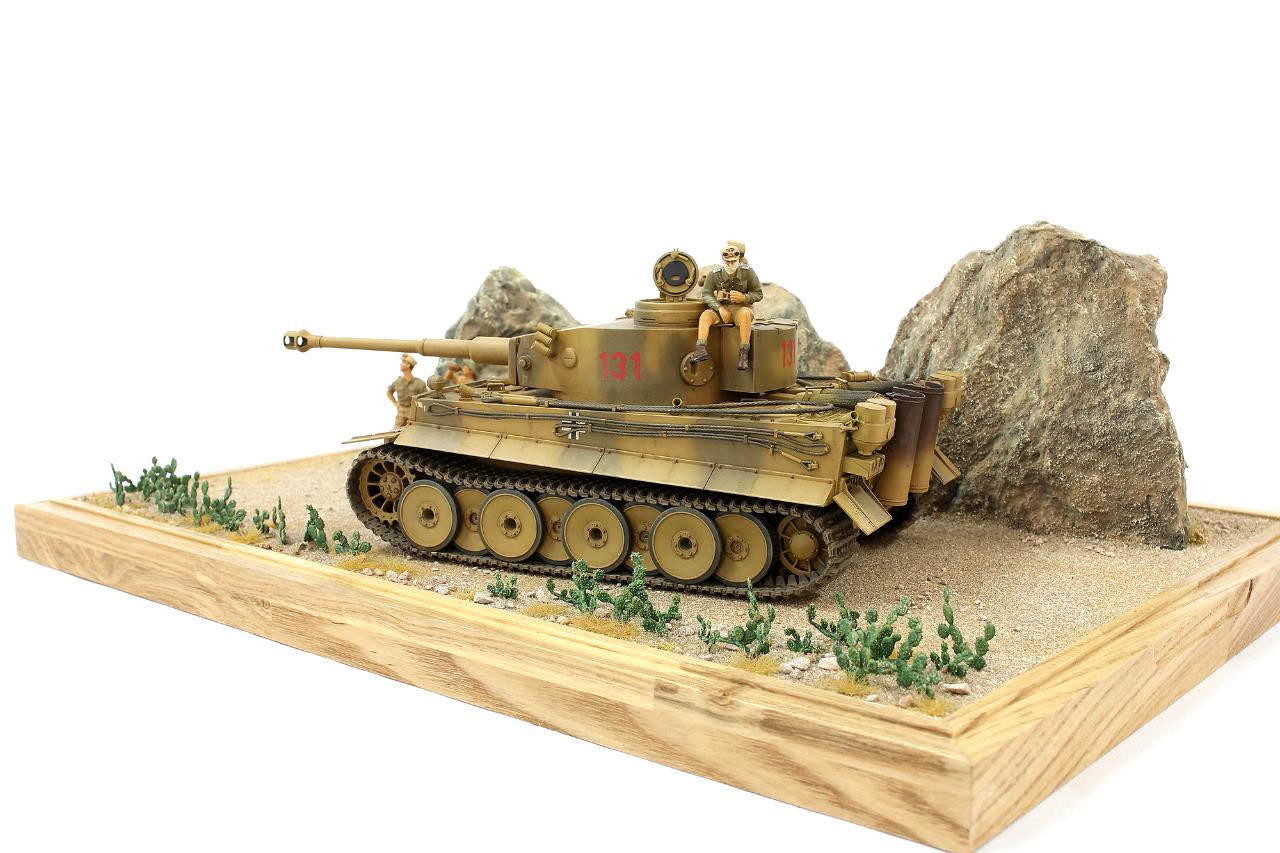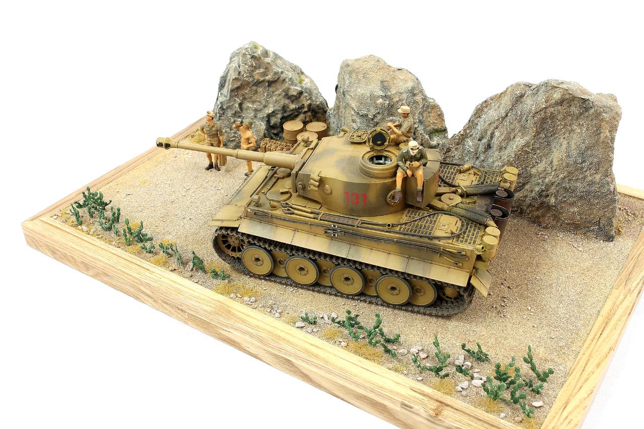 지난번 제작했던 타이거 131 로 작은 비넷을 완성하였습니다. 전차는 아크릴 워싱으로 먼지웨더링 을 더해주었고 타미야 슈타이어 킷에 들어있는 DAK 인형으로 전차병 을 표현하였습니다.