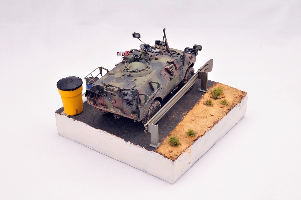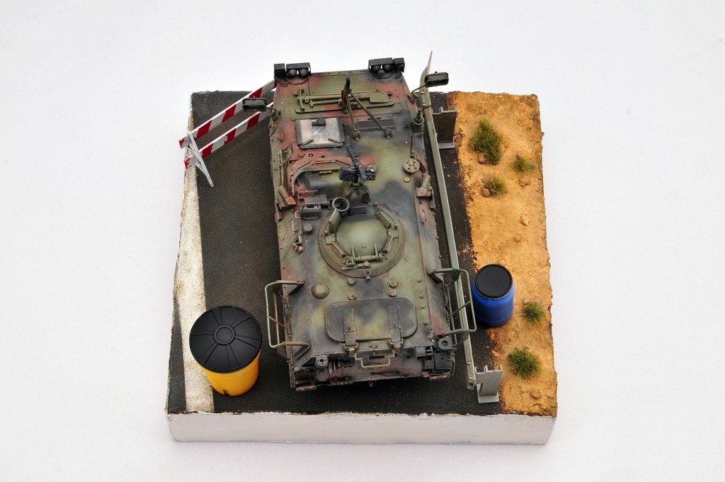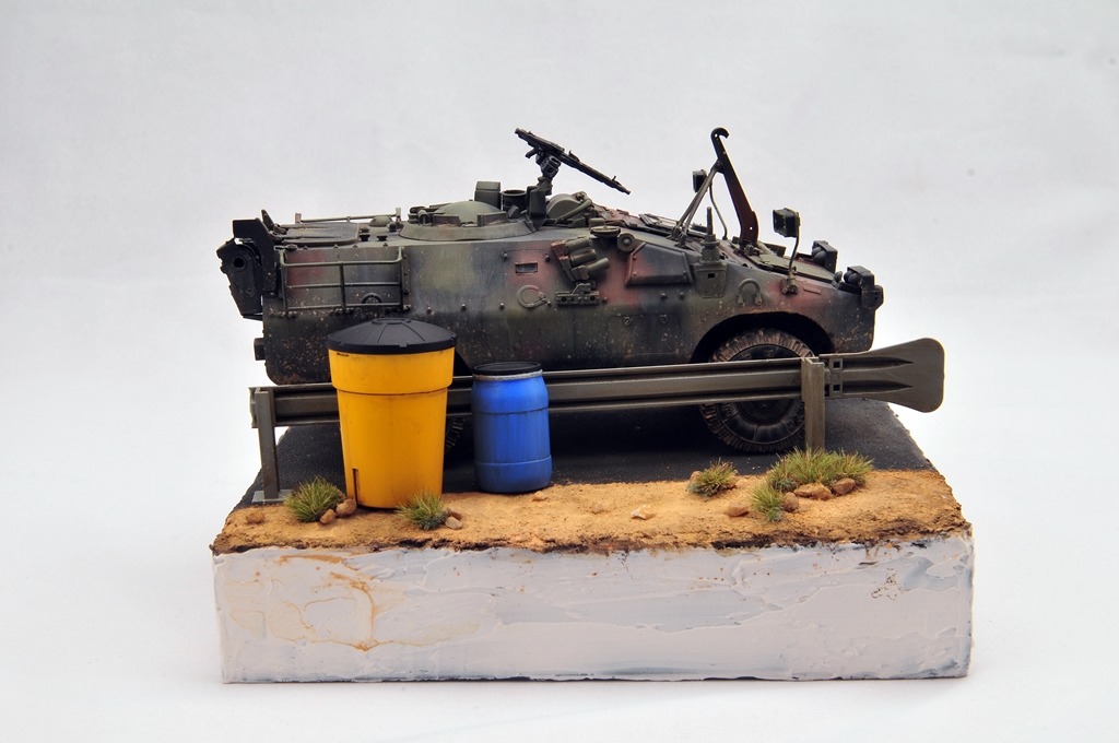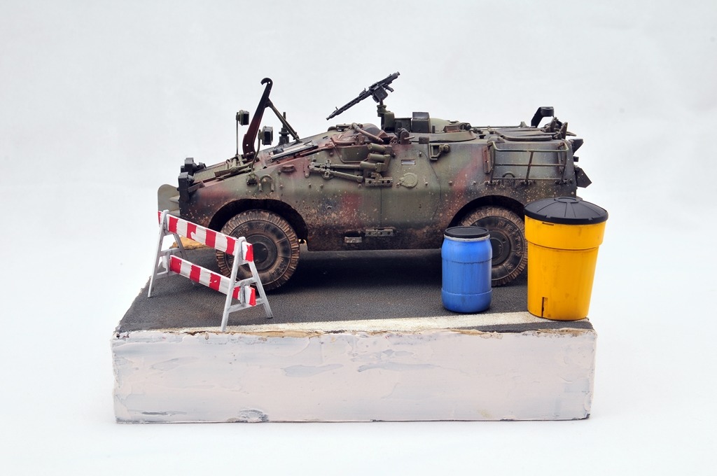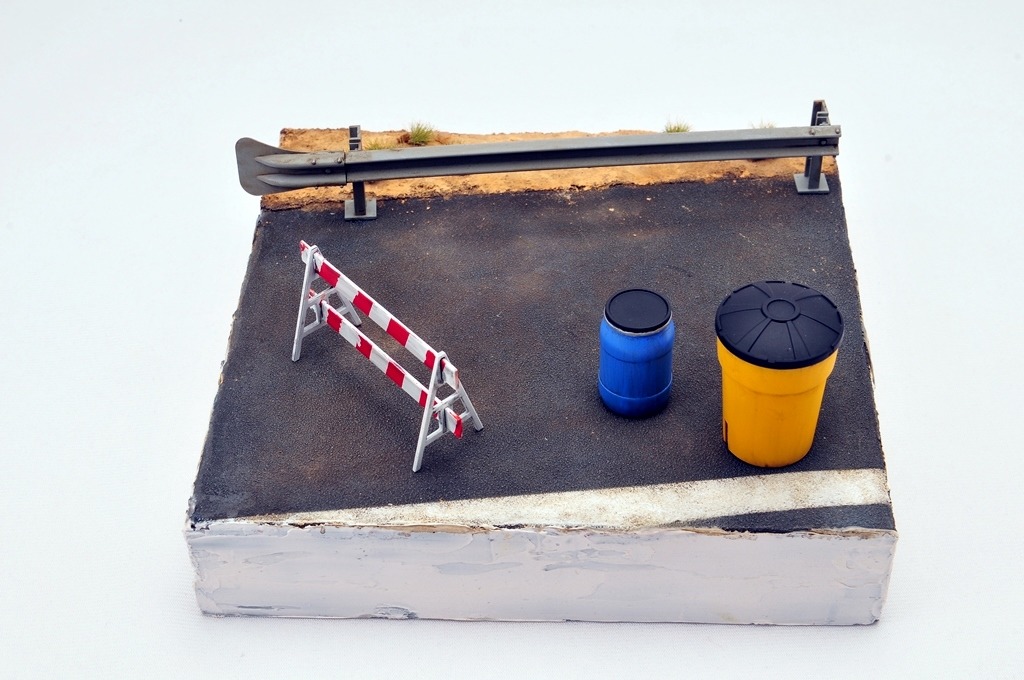 베이스는 다이소 상자를 활용했구요. 소품은 MENG 제품을 이용했습니다. 아스팔트 표현은 타미야 지면용 텍스쳐를 사용했습니다.