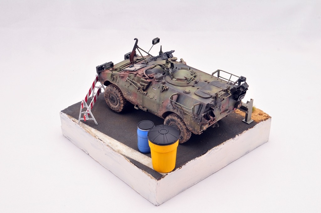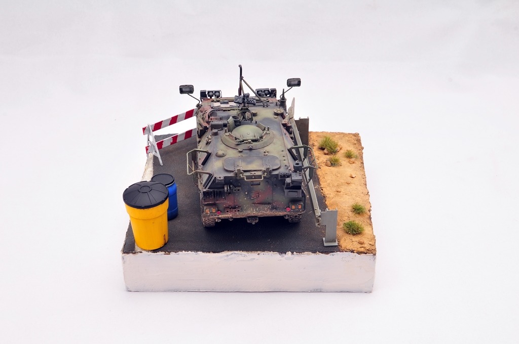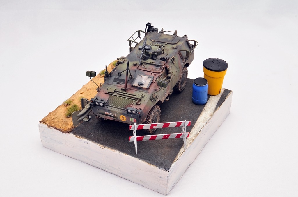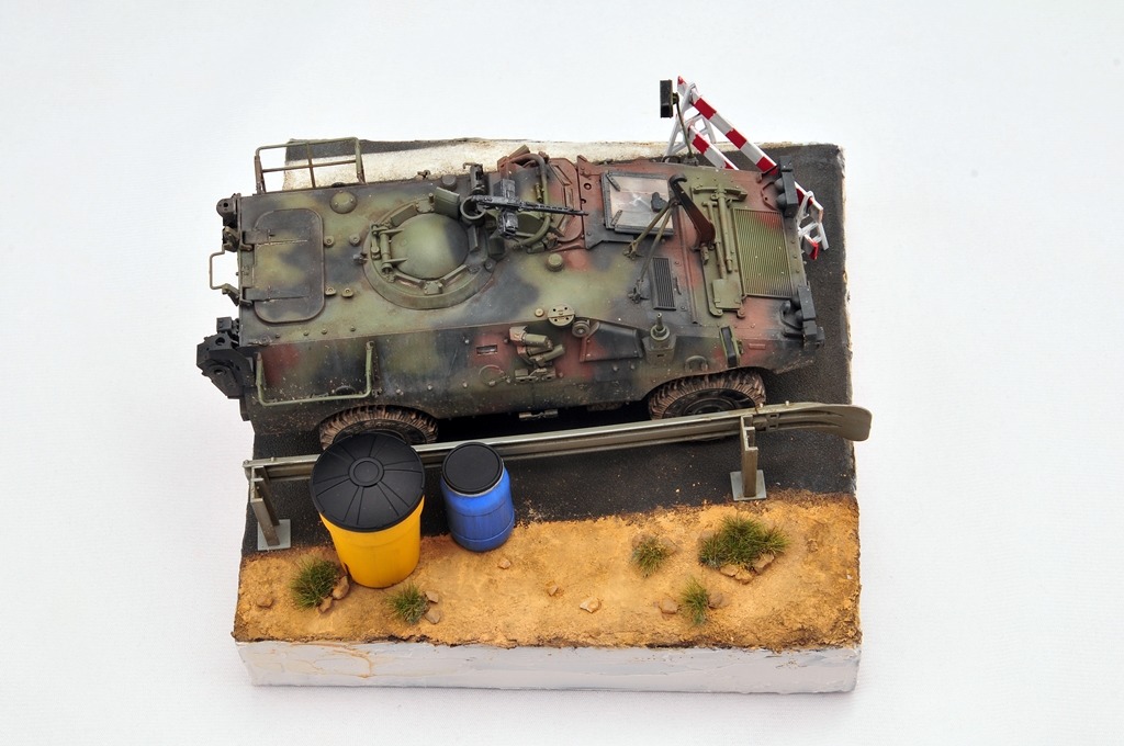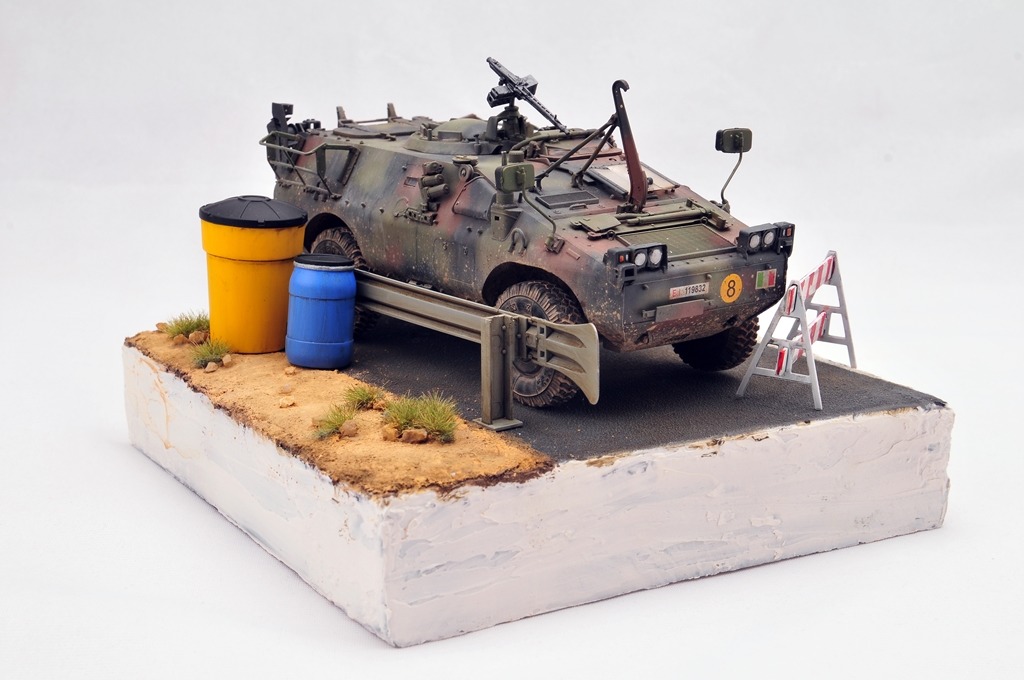 베이스는 다이소 상자를 활용했구요. 소품은 MENG 제품을 이용했습니다. 아스팔트 표현은 타미야 지면용 텍스쳐를 사용했습니다.