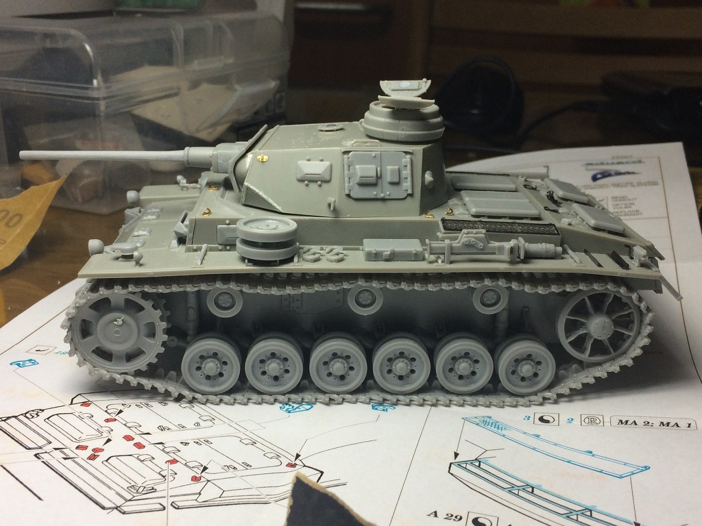 구판키트의 3호전차 후크, 기타고정장치등 못봐줄만한 곳은 별매를 이용했습니다