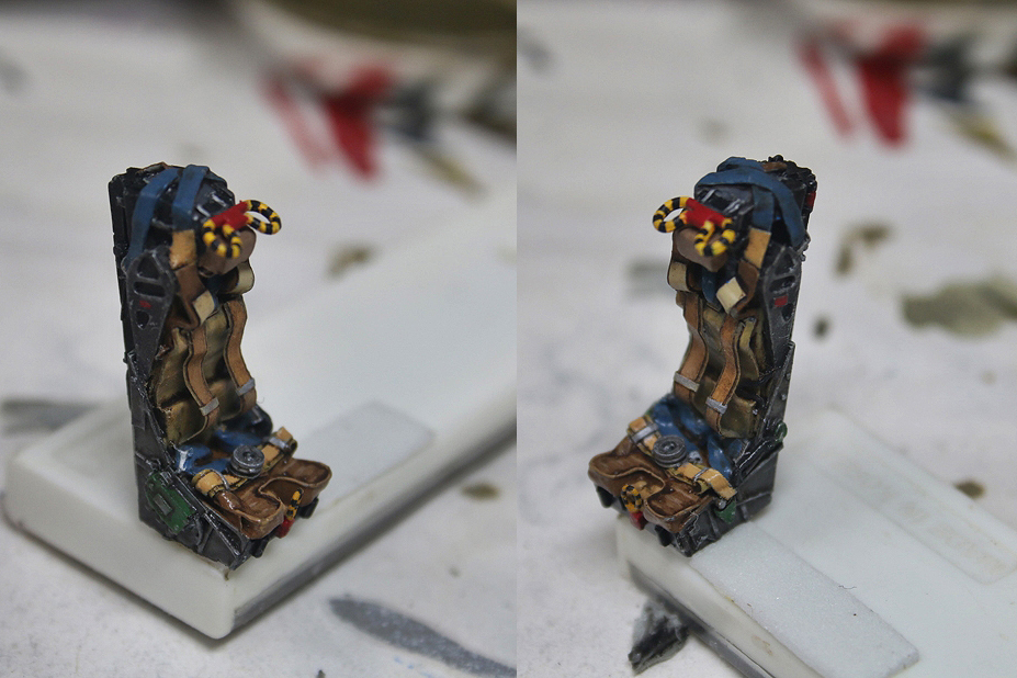 콕핏 부품들은 레진 별매품입니다.등받이쪽 벨트는 마스킹테잎으로 만들어주었습니다.