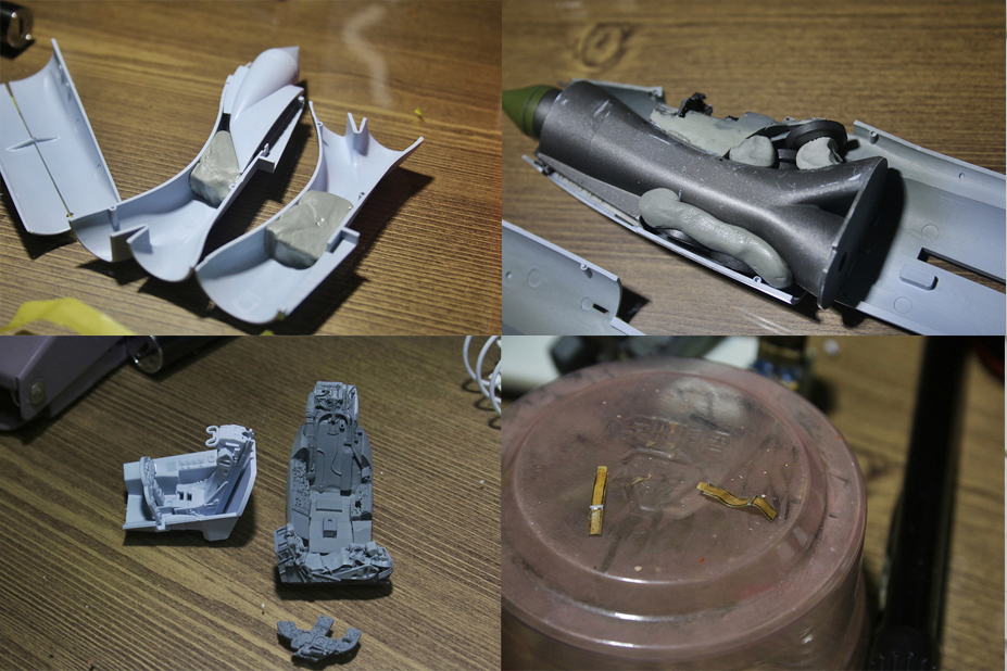 무게추 많이 넣어주어야하구요..왼쪽아래는 레진과 킷에 들어있는 콕핏 부품 비교사진입니다.