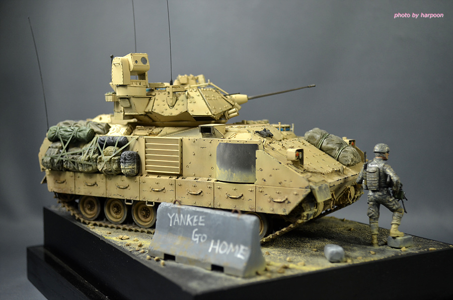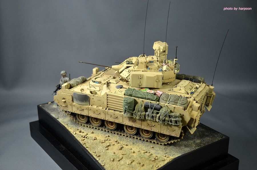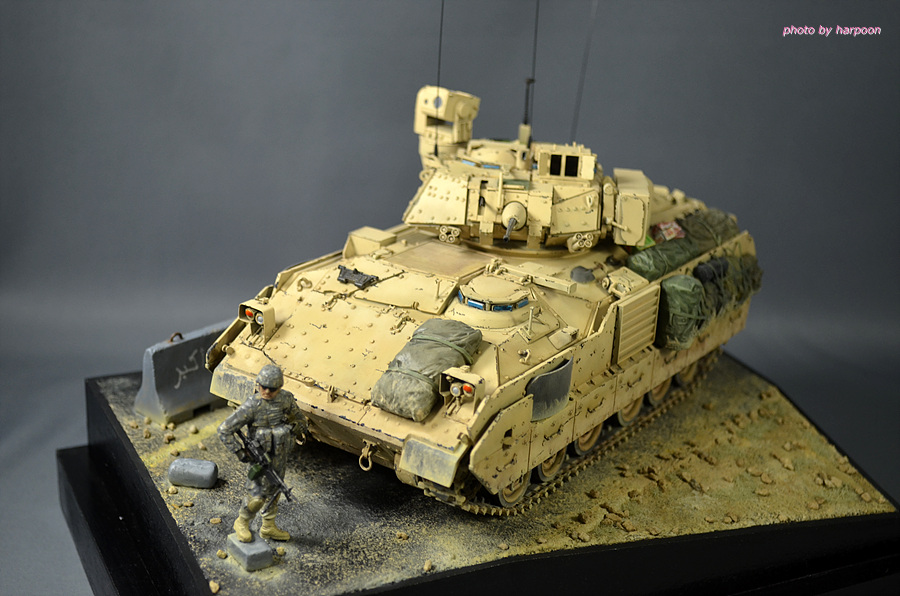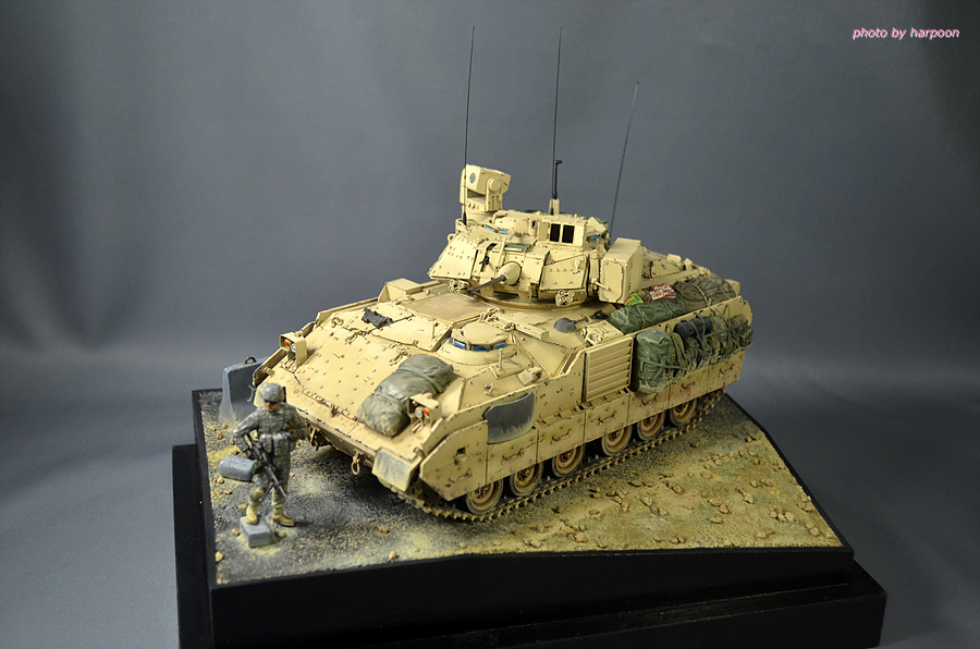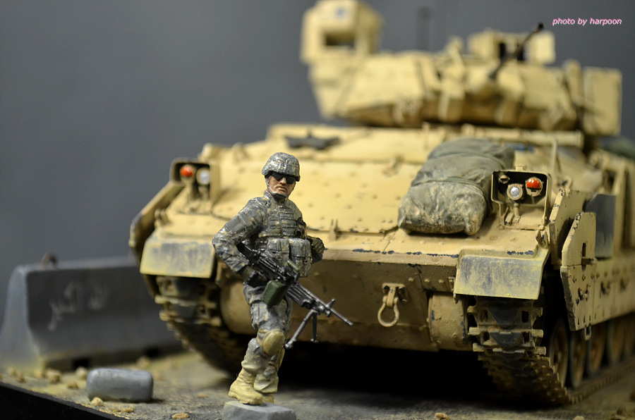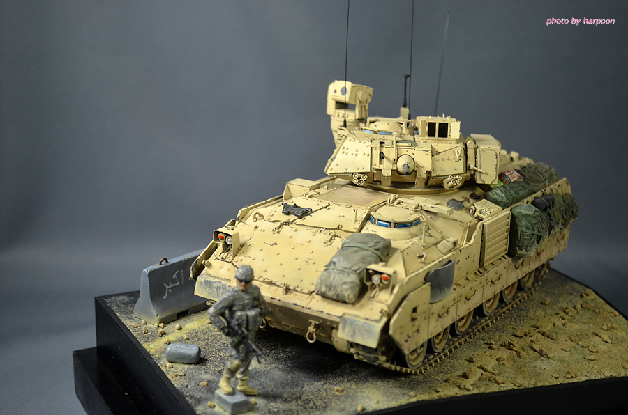 아카데미 1/35 M2A2에 레전드 M2A3컨버젼킷과 MB제 인형등을 조합해서 만든 M2A3입니다. 인형은 에나멜 붓도색을 했습니다. 베이스는 발사나무를 잘라서 만들었습니다.