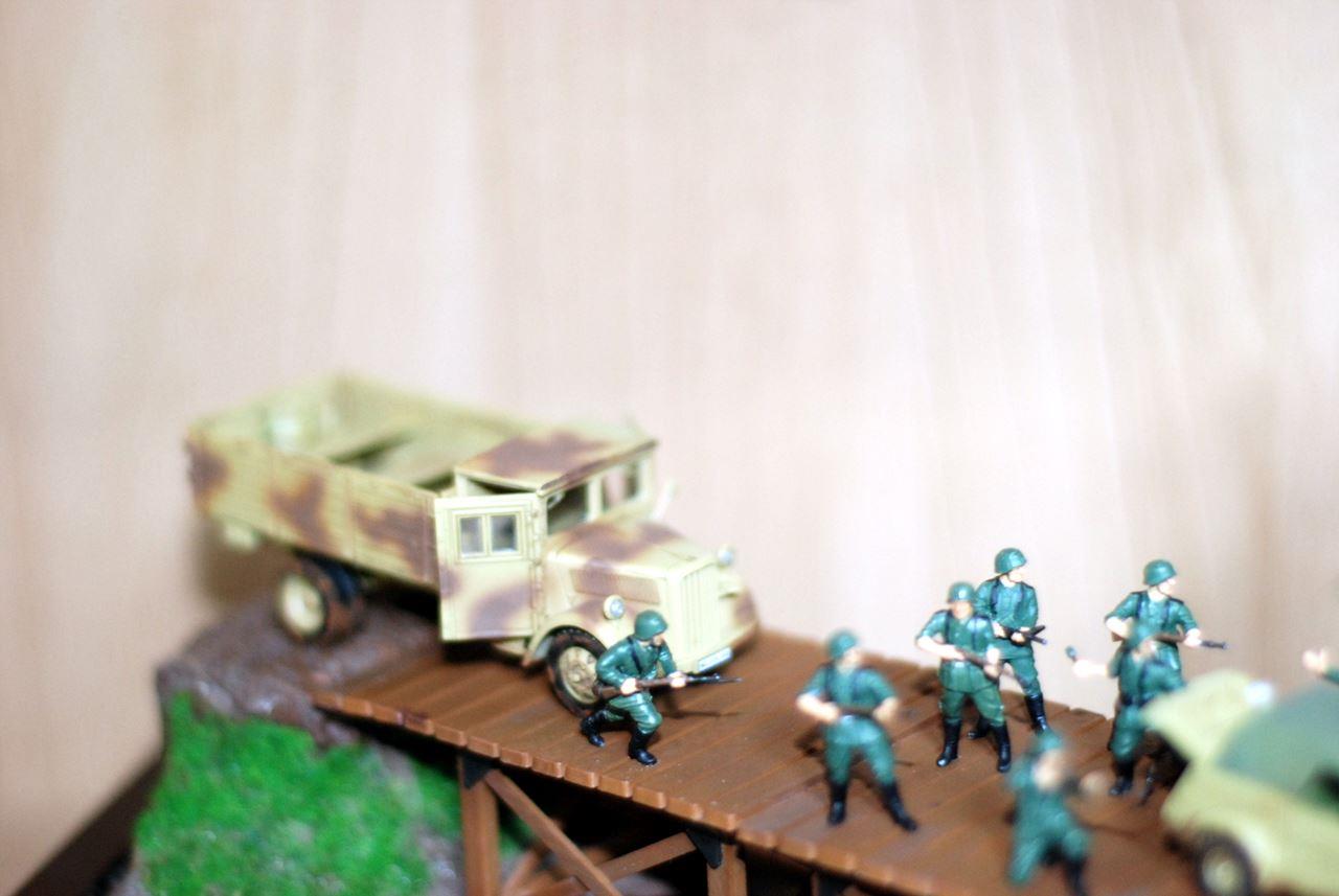 우선 제가 가진 키트가 제일과학의 교량셋(올드프라)이 있었구요. 이걸 어떻게 활용할까하다가 아카데미 독일군 차량을 올려봤구요. 또 한참 나중에 즈베즈다의 1/72 독일군들을 써봤습니다. (영화를 제일 마지막에 봤는데 이로써 이미지가 머릿속에 떠올랐습니다.)제목만 빌려왔지 영화와 디오라마는 별 연관이 없습니다.