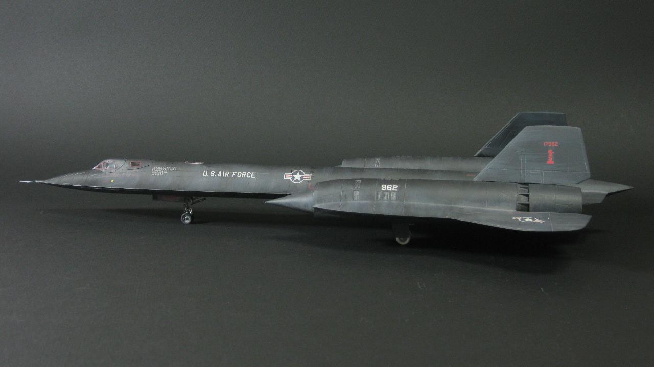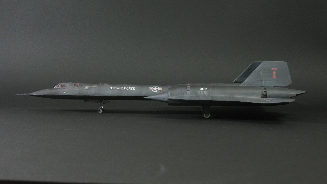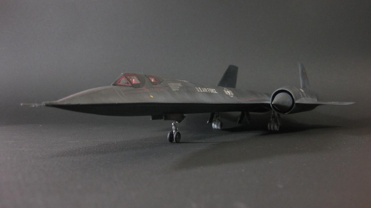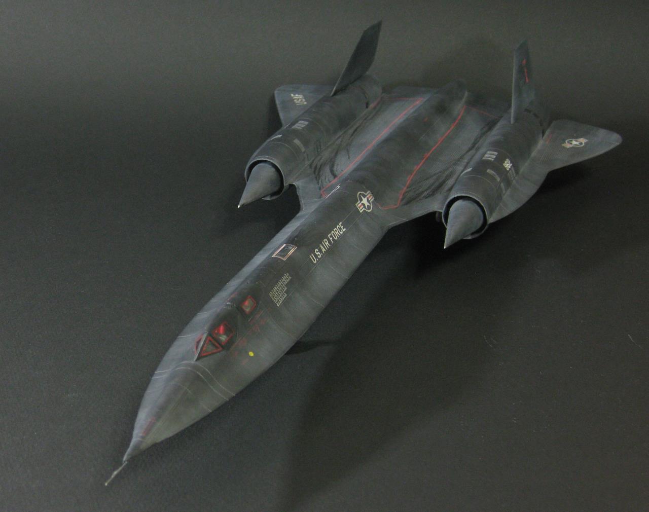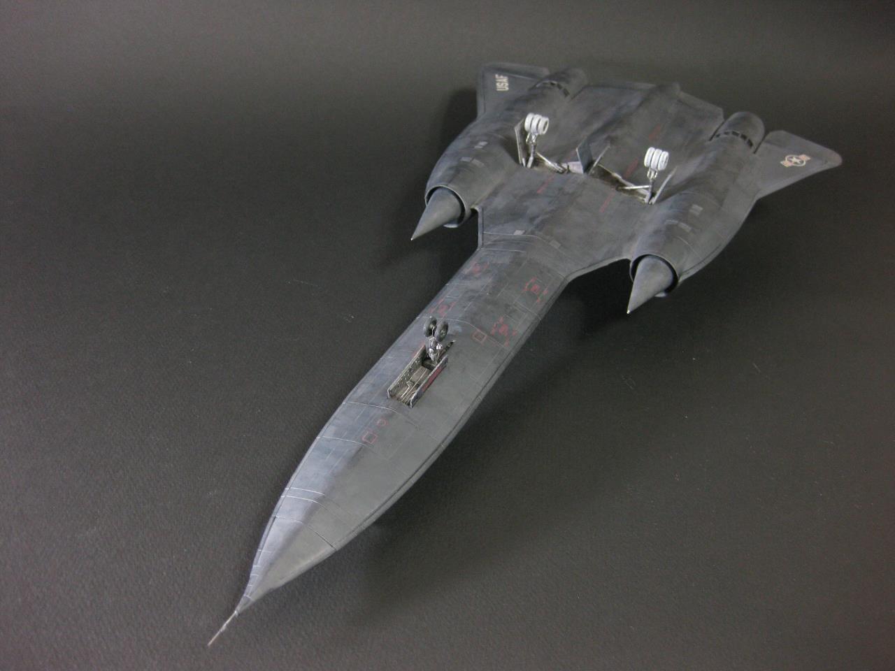SR-71은 최고속 운행시 공기 마찰열로 모든 외장 패널이 팽창합니다. 그래서 지상에서는 수축하여 벌어진 채로 주기되기때문에 각종 기름이 배어나온답니다. 그래서 그런지 실기사진을 보면 날개위에 기름이 죽죽 늘어져있는 모습이네요. 유광클리어 에나멜로 표현해주었습니다.