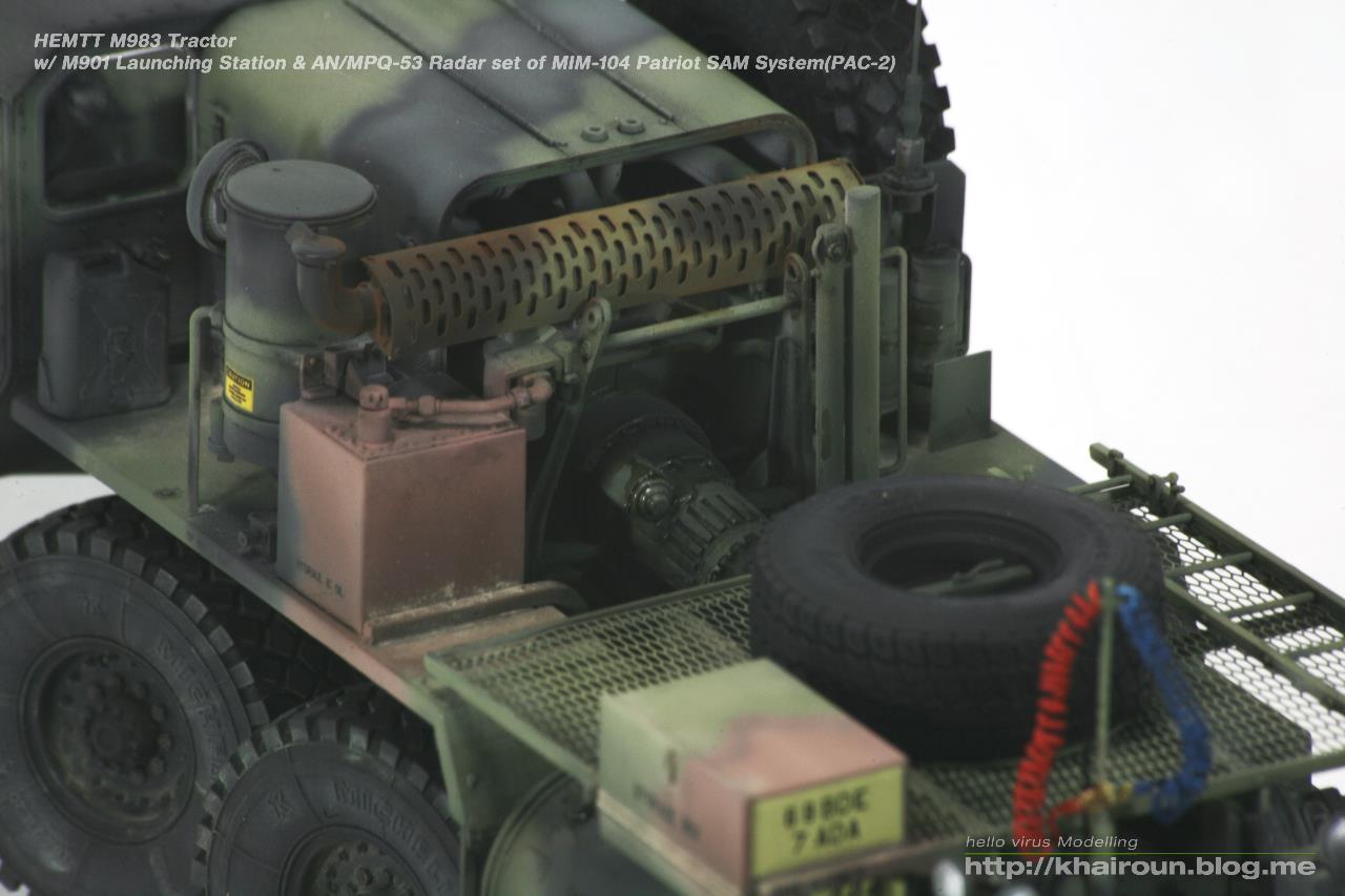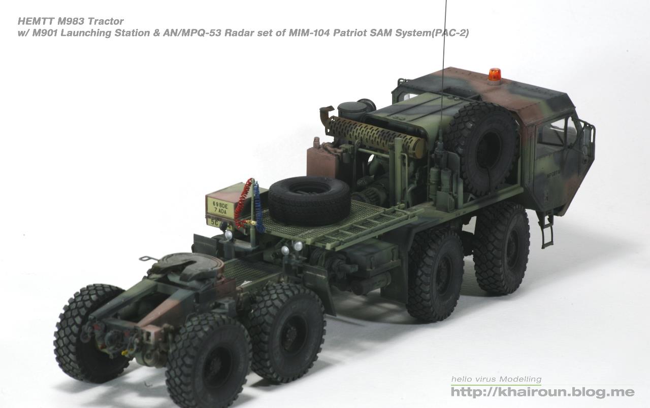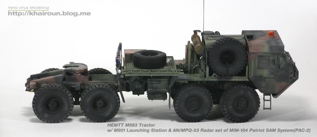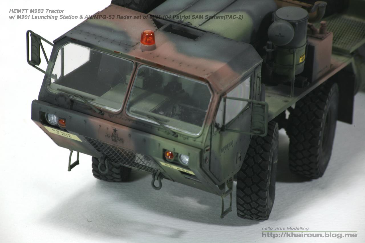 트럼페터의 키트를 베이스로 DEF.model에서 얼마전 발매된 휠세트를 사용하였습니다. 이전에 발매되었던 M977용 휠보다 각인도 뚜렷해지고 볼륨감도 훨씬 풍성해져서 무척 보기 좋습니다. 트랙터 부분은 조립이 할만한데 트레일러는 조립이 까다로운 부분이 많습니다. 전체적으로 구조도 복잡해서 위장무늬 도색도 만만치가 않습니다. 키트의 데칼은 소프터에도 반응을 잘해서 조심히 다루어야겠더군요.