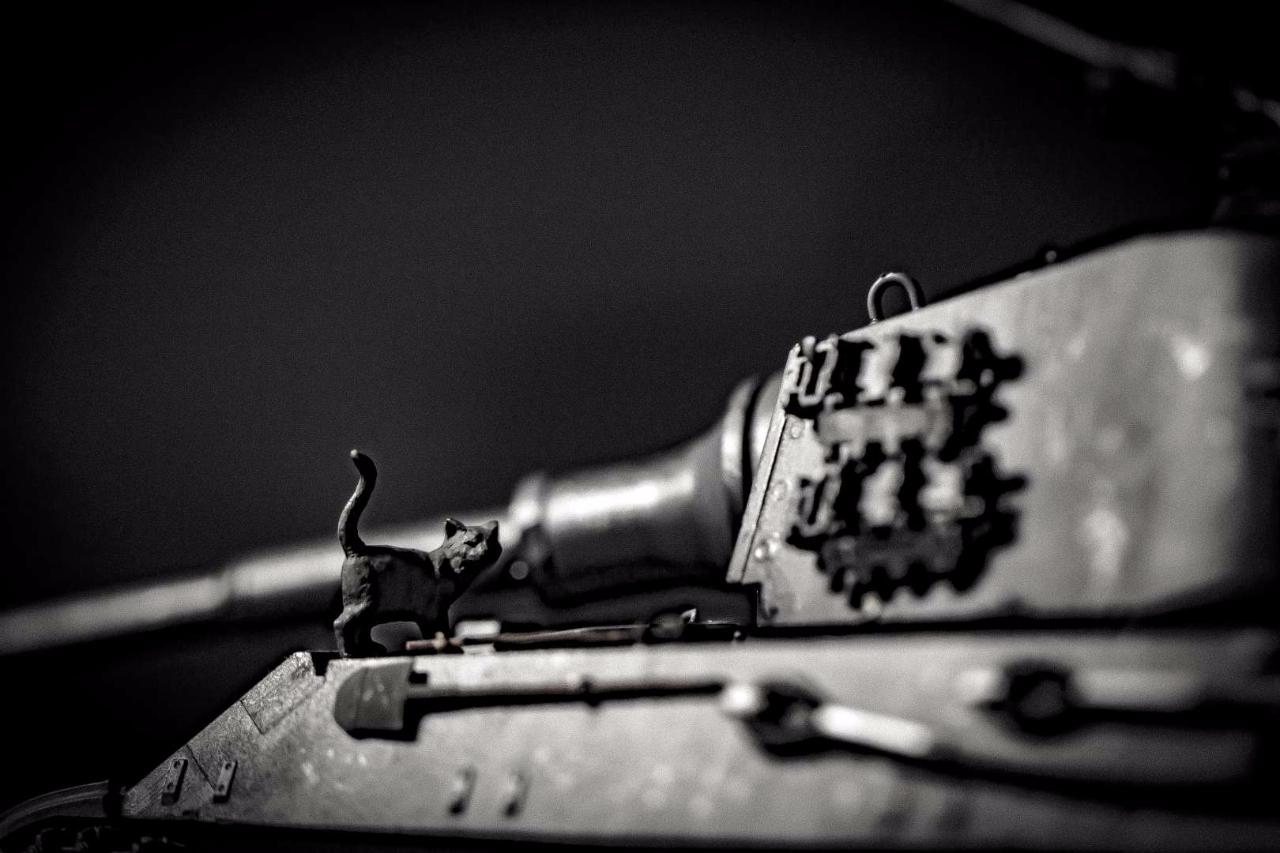 난생 처음 보는 강철 괴물에게 쫄지도 않고 기어올라온 고양이..... 곧 전차장에게 붙잡혀 킹 타이거라고 이름 붙여질 예정입니다.
