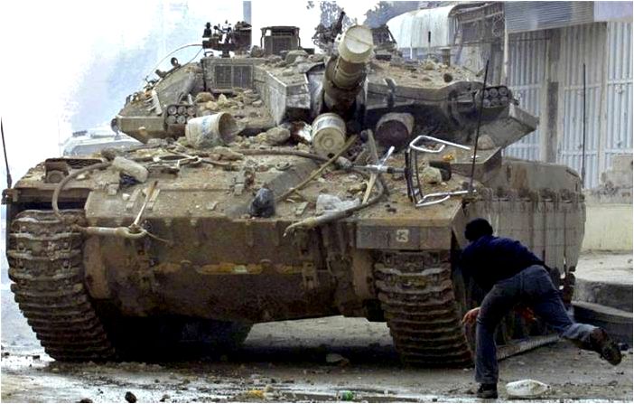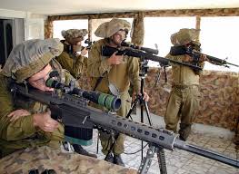 NAGMACHON의 해치를 열려는 시위자를 저격하려는 IDF 저격수. 그 손에 들려진 바렛저격총