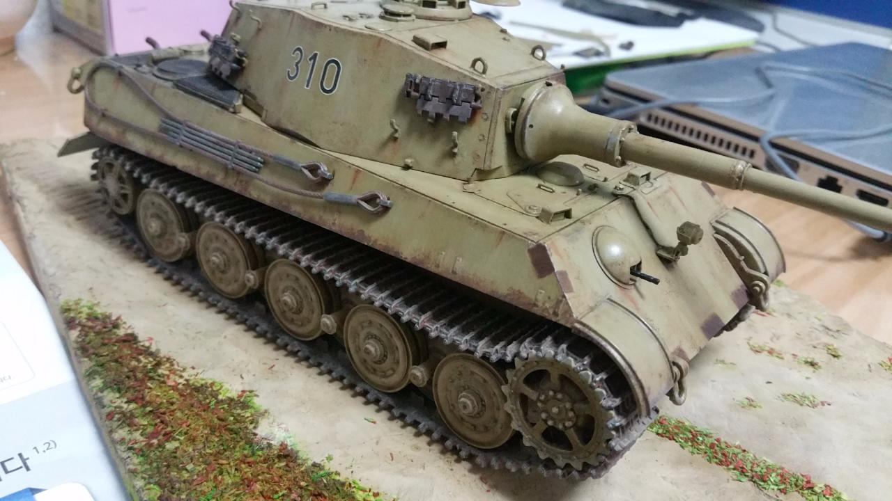 타미야 다크옐로우 캔스프레이로 도색 후 유화와 에나멜로 워싱 및 웨더링을 하였습니다.