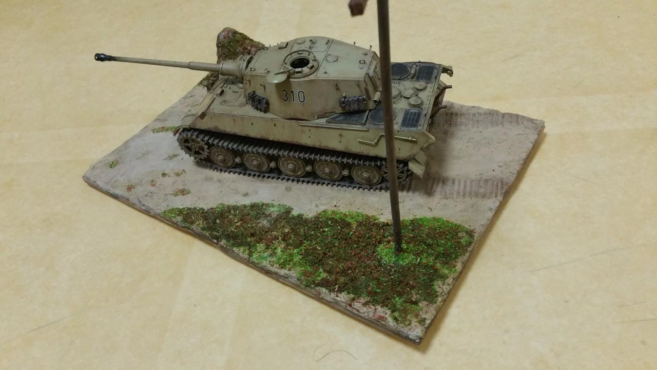 우드락에 지점토를 올린 후 탄색 스프레이로 기본도색을 하고 유화, 파스텔, 잔디표현제로 마감했습니다.