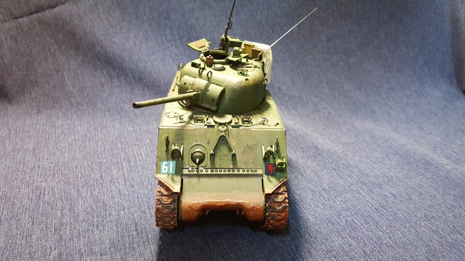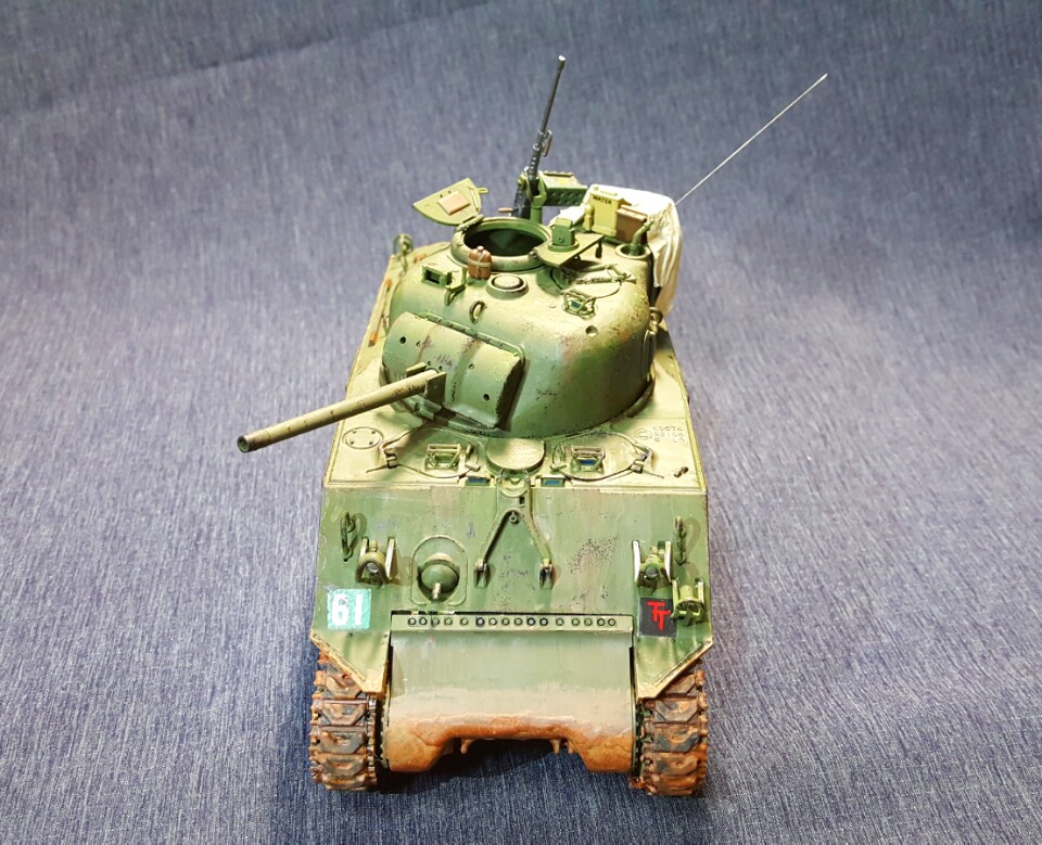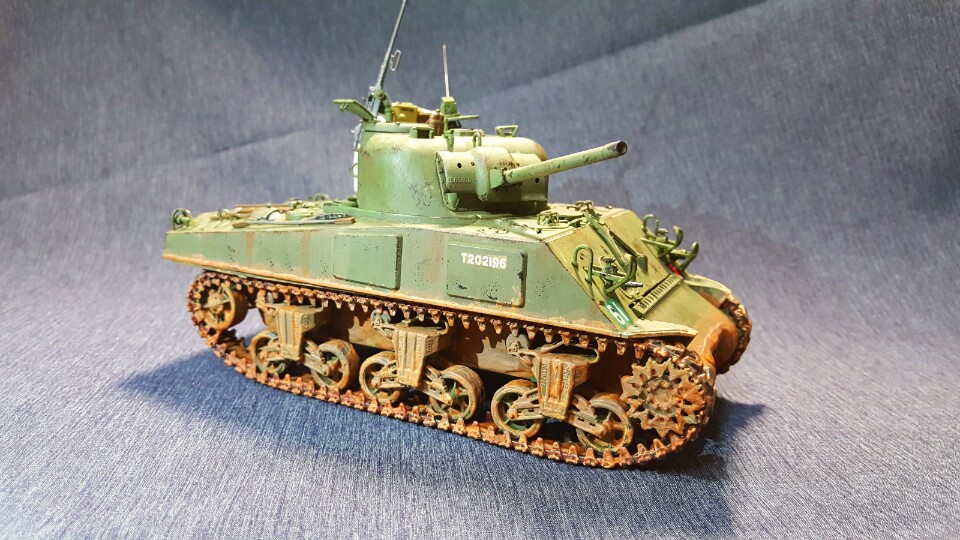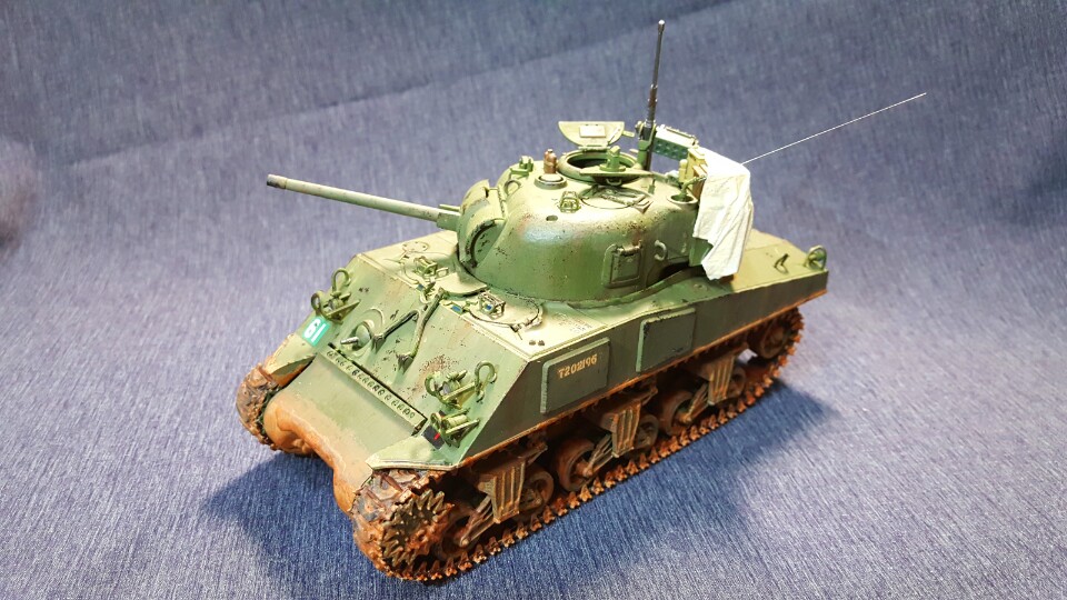 이번에 작업한 작품은 영국군 셔먼입니다. 개인적으로 영국군셔먼을 한대가지고 싶었는데 두달전에 대구에 있는 수성아카데미에서 셔먼이 있길래(사실은 해병대형입니다.ㅠㅠ)얼른 업어와서 자료를 막 찾은결과 이형식은 영국에서 운용한적이 없답니다. 그래서 고증은 안드로메다가 되버렸지만 너무 가지고 싶어서 결국완성시켰습니다. 미국 해병대형이지만 영국군 데칼과 수통,연로통 그리고 영국군 특유의 포탑뒤의 정비통으로 최대한 영국분위기를 내주었습니다. 아 그리고 도색은 아크릴 올리브그린으로 미군보다 좀 더 밝은 느낌의 영국군도색을 해주었습니다. 부족하지만 즐감하시고 가시실바랍니다.
