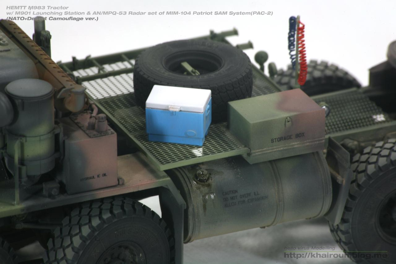 참고로 조립은 의뢰자분께서 해오셨고, 저는 도색이후의 과정만 작업을 진행했어요. 특별히 요청하신 부분은 발사대 4개중에 1개만 사막색으로 도색하고, 차량위에 쿨러 하나 올려 달라고 하셔서 말씀하신 대로 작업을 진행했어요.