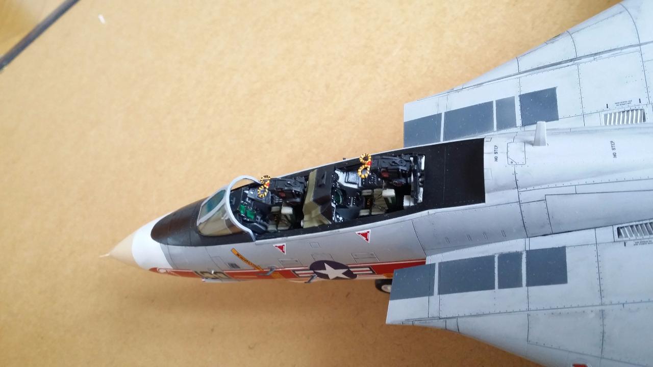 캐노피를 연 상태로 전시되는 동사 톰켓 모형이 있어서 저는 캐노피를 닫아 버렸습니다. 조종사를 테우면 계기판 공들인 것이 안보이므로 태우지 않기로.