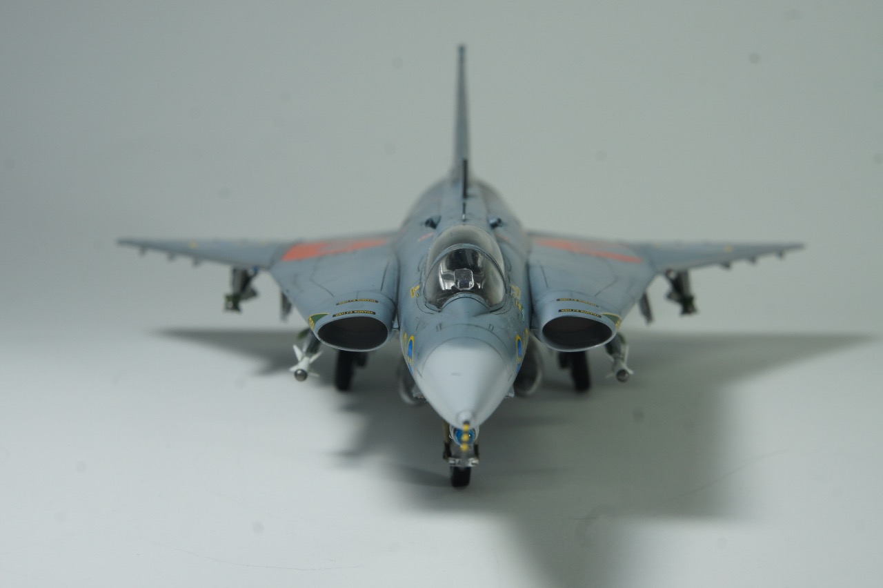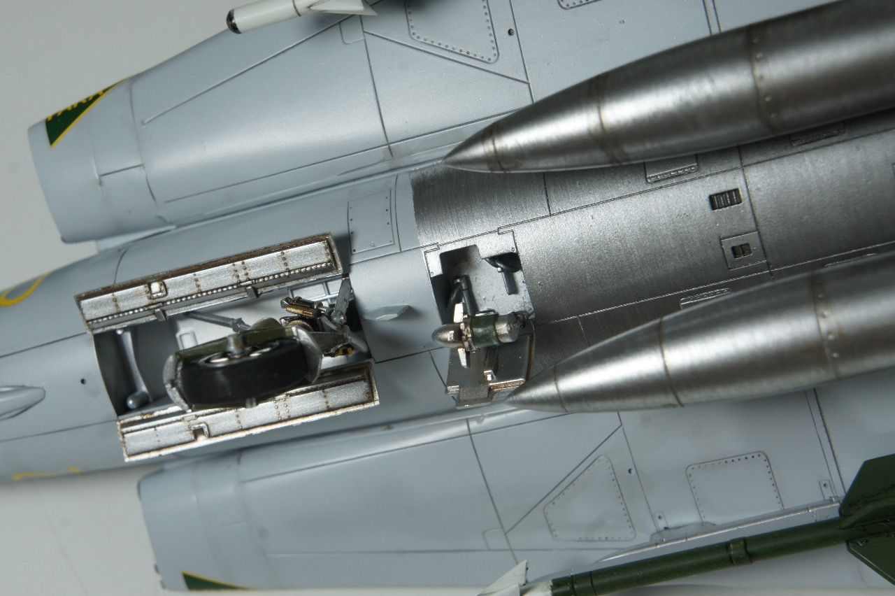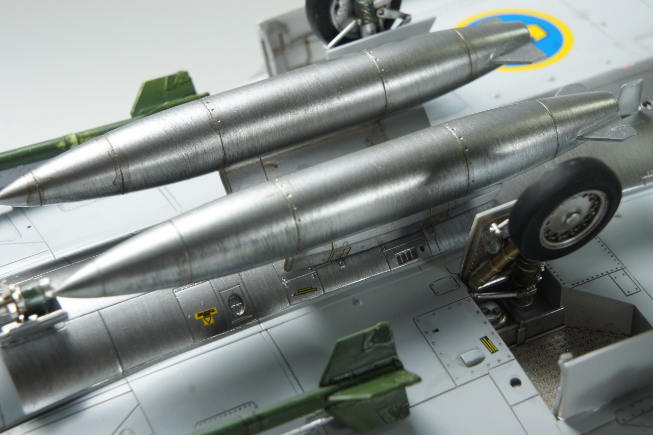 배면은 밝은 회색과 베어메탈 투톤입니다. 드롭탱크가 동체중앙에 병열로 장착되는것도 특이합니다. 드롭탱크 위치에 미사일을 장착하기도 하고 날개위치에 드롭탱크를 장착하기도 합니다.