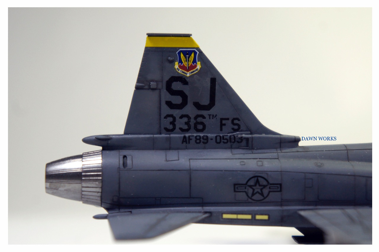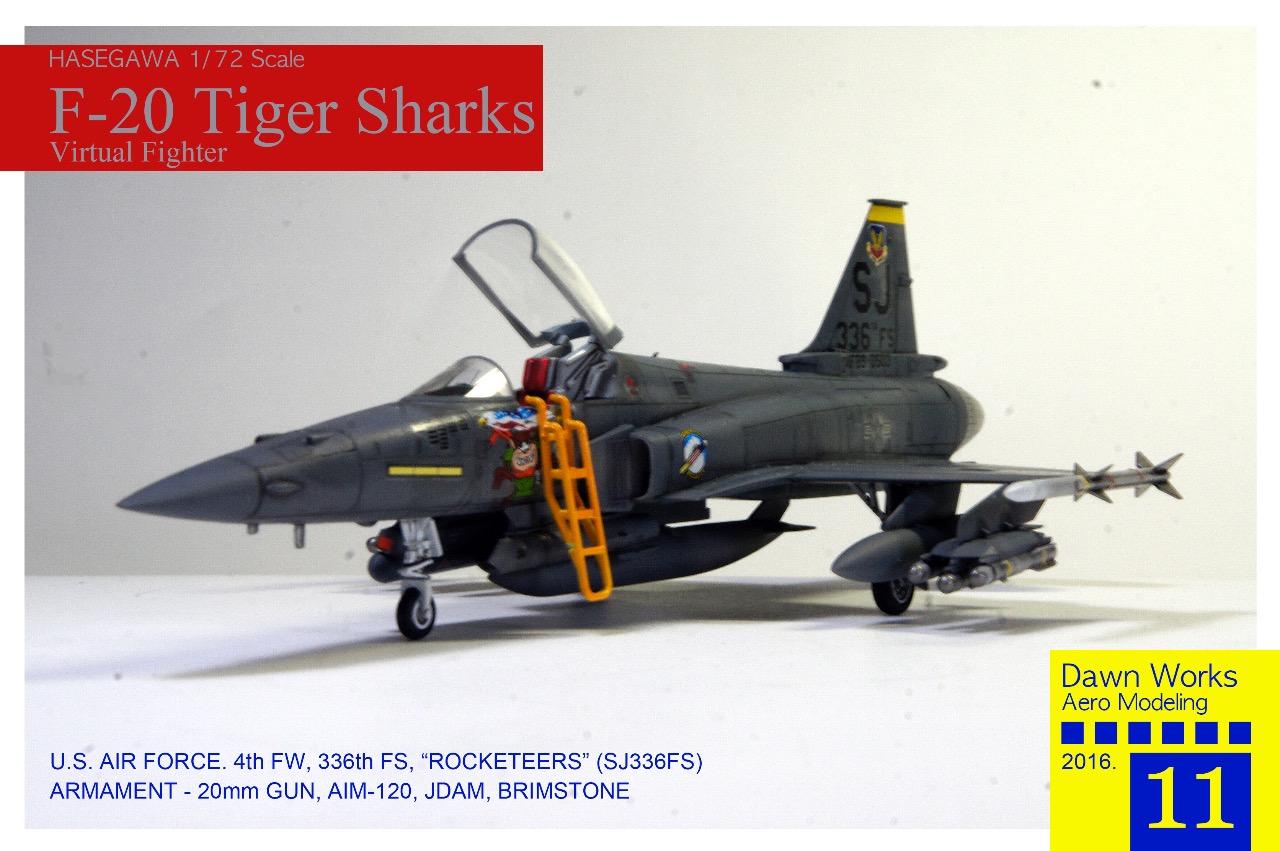 본 작품은 타이거 샤크가 제식 채용되어서 실제 운용되었다는 전제로 만들었습니다. 1/72 F-15E 데칼을 활용할겸 단순한 타이거샤크의 마크를 대체할 목적으로 무리한(?) 설정일수 있겠습니다만 웬지 이런 가상의 기체는 재미있는 작업이 되겠다 싶었습니다.
