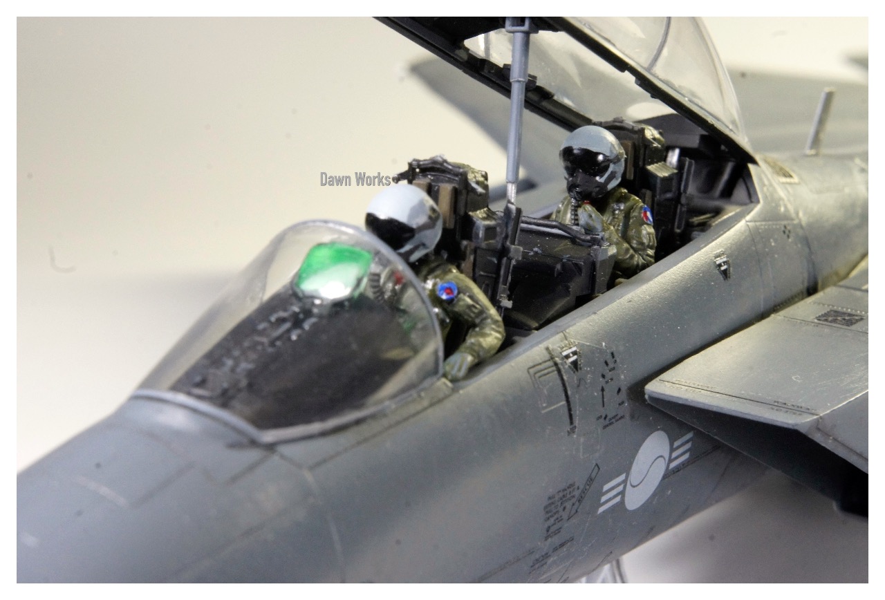 좀더 디테일한 레벨 키트를 중심으로 아카데미 키트의 한국공군형 기체 디테일을 활용하는 방법으로 제작했습니다. 수직미익과 안테나 페어링, 데칼을 차용했고 조종사 인형도 가져왔습니다.